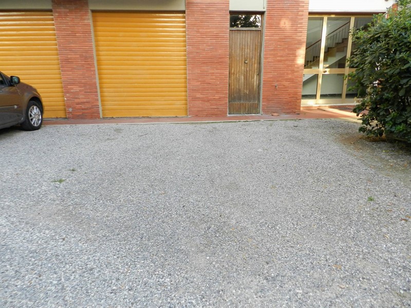Inoltre, l'appartamento dispone di un garage privato e di un ampio spazio esterno, per poter parcheggiare le auto.