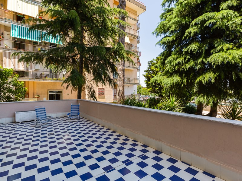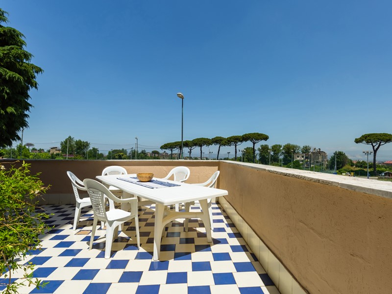 La zona giorno, ampiamente aperta sull'esterno, si affaccia sul terrazzo a livello  -  un vero gioiello di circa 100 mq, perfetto per pranzi, relax o serate tra amici. Lo spazio esterno è impreziosito dal suggestivo affaccio sul verde del parco, che garantisce privacy, tranquillità e una piacevole vista aperta sul contesto circostante.