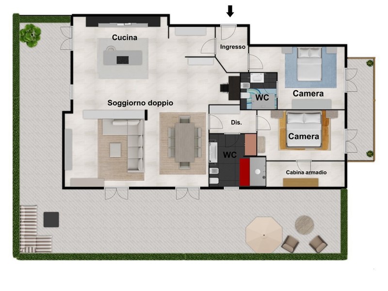 Appartamento elegante e moderno con terrazzo e posto auto