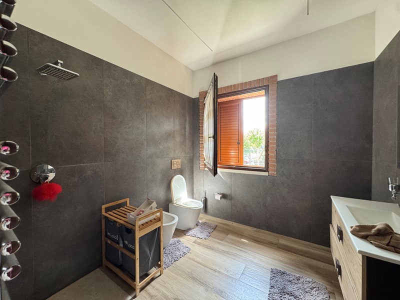 Il primo piano, invece, è ancora allo stato grezzo e rappresenta una straordinaria opportunità per chi desidera personalizzare la propria casa. Il progetto prevede la realizzazione di tre camere da letto, di cui una con cabina armadio e bagno privato, oltre a un ulteriore bagno a servizio del piano. Questa caratteristica offre al futuro proprietario la libertà di completare gli spazi secondo il proprio stile e le proprie necessità.