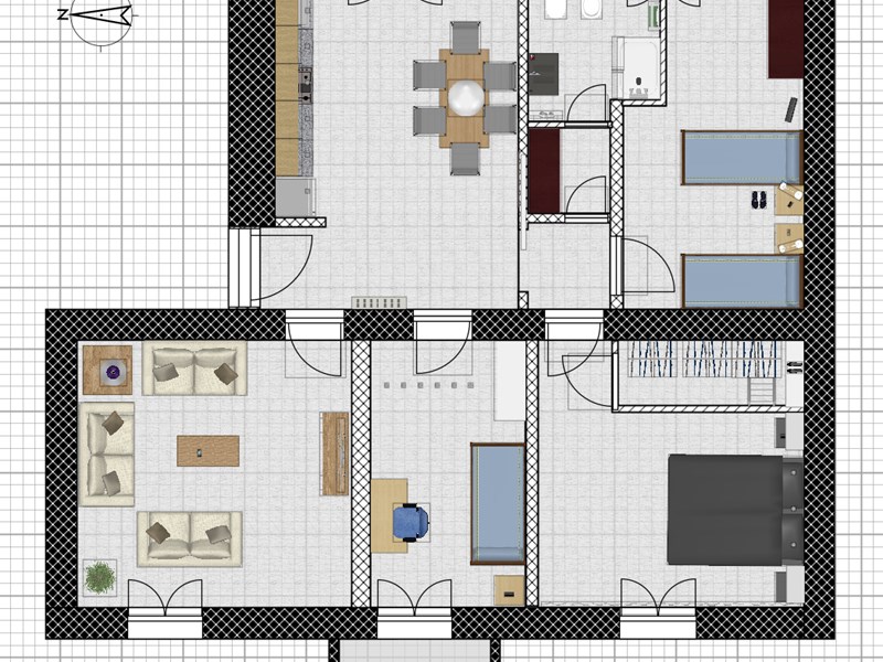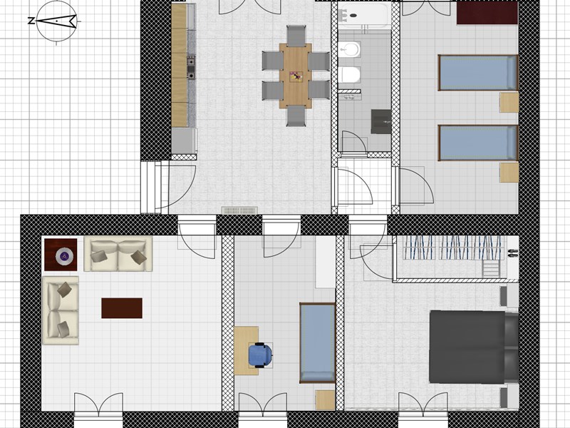 L'appartamento si presenta in condizioni abitabili, ma per chi ha voglia di dare una nuova vita agli interni, abbiamo a disposizione dei render che mostrano diverse possibilità di layout e design.