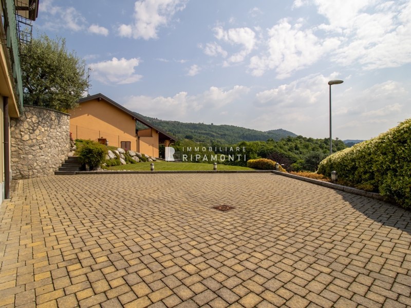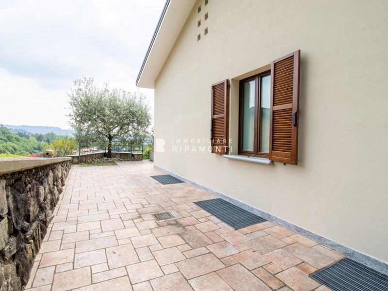 Villa singola in vendita a Ello.\nRecente villa singola in zona panoramica, affacciata sulla Brianza. \nDislocata su tre livelli rappresenta una soluzione ideale per una famiglia che ama la casa e vivere un ambiente accogliente, comodo e confortevole, ideale per tutte le età e per una famiglia con genitori, figli e anche nonni. \nBeneficia di una superficie del lotto con giardino da circa Mq. 1.600 e la possibilità di realizzazione di una piscina di buone dimensioni. \nLa villa con una superficie di circa mq. 400 con finiture di livello superiore, quali a titolo indicativo ma non esaustivo la videosorveglianza, antifurto perimetrale e volumetrico, irrigazione giardino, predisposizione impianto filodiffusione, impianto aspirapolvere centralizzato, serramenti legno alluminio blindati si compone di: \nPiano primo, salone affacciato sul terrazzo vivibile coperto, cucina abitabile, sala da pranzo, disimpegno notte, camera matrimoniale, bagno padronale, ripostiglio lavanderia, studio, locale guardaroba.\nPiano secondo, due camere, due bagni, terrazzo panoramico, tre locali a disposizione ideali per studio, guardaroba o locale hobby. \nAl Piano terra, grande locale a disposizione con camino affacciato direttamente sul giardino e sul cortile da destinare a posti auto, bagno, lavanderia, ripostiglio, centrale termica. \nBox plurimo per il ricovero di 4 - 6 auto. \nRiscaldamento autonomo con caldaia turbo, classe energetica E, indice di prestazione energetica 159,74.\nRif. 102V. \nPer la tutela della Privacy, in alcuni casi su esplicita richiesta del venditore, gli indirizzi sono indicativi. \nPer informazioni chiama subito Ufficio 0341.353.650. Cell. 335.840.1538. \nVisita il sito www.immobiliripamonti.it \n - Maggiori Dettagli: Vista panoramica, Giardino Privato, Cucina Abitabile, Taverna, Animali Domestici , Giardino Alberato , Terrazzo Panoramico