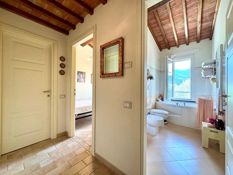 Nel Comune di S.G.Terme, nella bella e affascinante frazione di Mezzana, immersa nel verde e inserita in un meraviglioso contesto naturalistico, vi proponiamo una bellissima soluzione abitativa caratterizzata da uno stile particolare sia per gli amanti del rustico che del moderno. L'immobile é stato costruito con criteri di grande sicurezza e materiali di pregio tra cui travi in castagno, pavimenti interni in. gress, riscaldamento a pavimento, aria condizionata, impianto di allarme, panello solare per la produzione dell'acqua calda, gli infissi moderni, isolamento esterno a cappotto e molto altro. Ogni dettaglio della casa è stato curato con attenzione, creando un'atmosfera accogliente e sofisticata. La proprietà, libera su due lati, vanta un giardino ben curato fronte/retro di circa 80 mq, con una tenda elettrica retrattile ideale per momenti di relax e la contemplazione. L'abitazione che si sviluppa su due livelli , è così composta: al piano terra l'ingresso principale dal giardino che si apre su un ampio soggiorno ricco di luce grazie alle ampie vetrate, cucina abitabile con accesso diretto al giardino , bagno completo e un comodo ripostiglio sottoscala. Una comoda scala interna conduce al piano primo, dove troviamo una spaziosa camera matrimoniale, una camera singola e un secondo bagno dotato di vasca. Completano la proprietà un ampio garage/lavanderia, una tettoia per il parcheggio di due auto, è un locale tecnico, che aggiungono ulteriore valore alla casa. Che siate appassionati di architettura tradizionale o di design moderno, questa dimora saprà conquistarvi con il suo stile unico e la sua posizione privilegiata nel verde paesaggio, nella tranquillità della campagna e nello stesso tempo a pochissimi chilometri da Pisa.