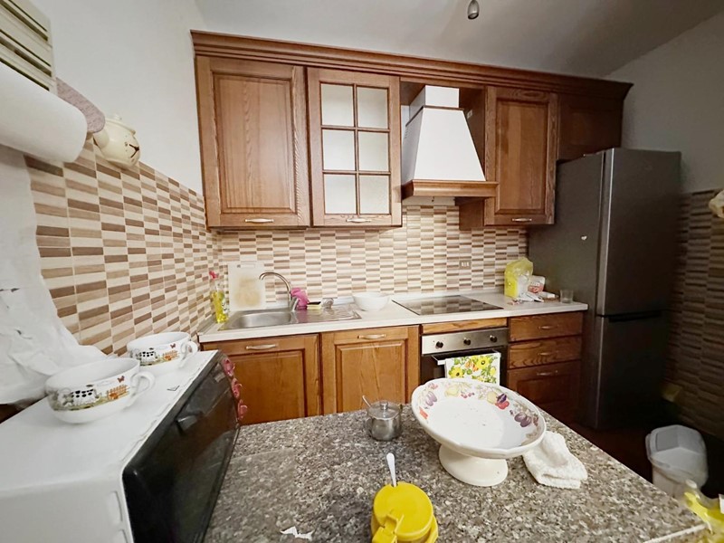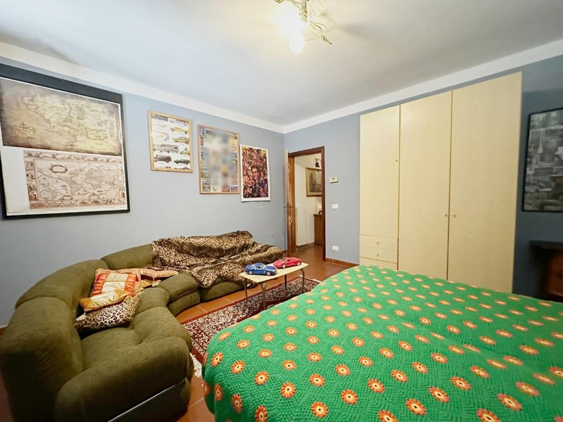 Al piano terra si trovano l’ingresso, un garage attualmente adibito a zona giorno, un locale lavanderia, un vano tecnico e un bagno con doccia. La zona principale dell’abitazione si sviluppa al primo piano, dove un disimpegno introduce alla cucina abitabile con camino e a una camera matrimoniale. Al secondo piano sono presenti altre due camere matrimoniali e un ulteriore bagno con doccia, oltre a un sottotetto utilizzabile come ripostiglio.