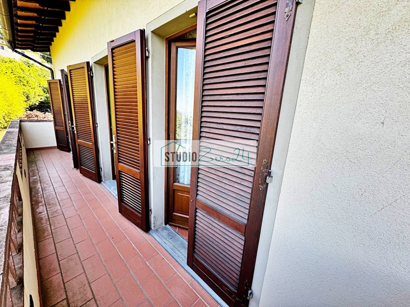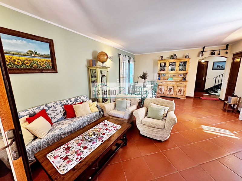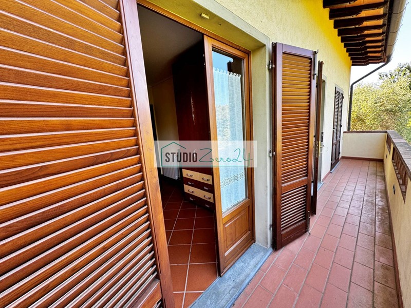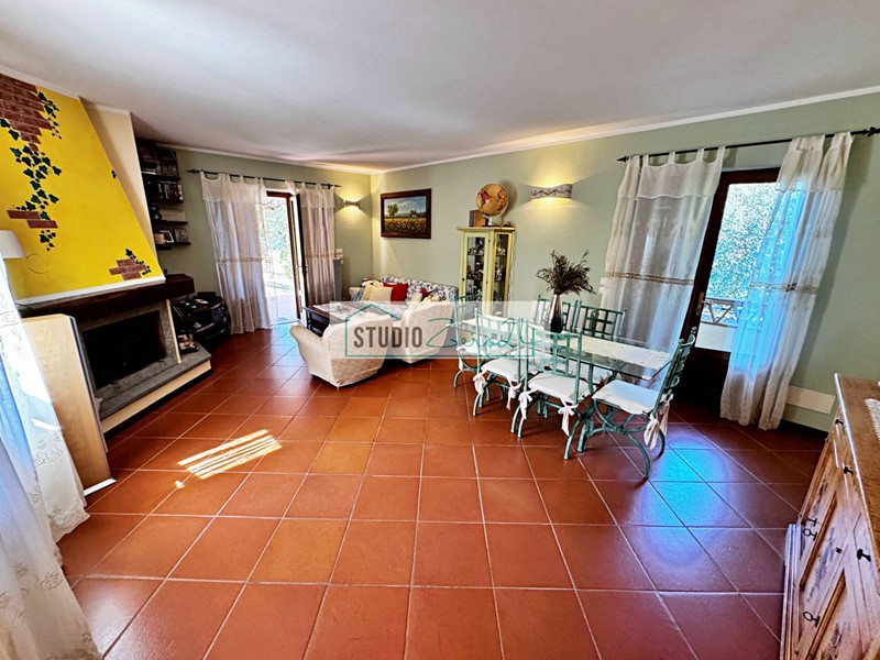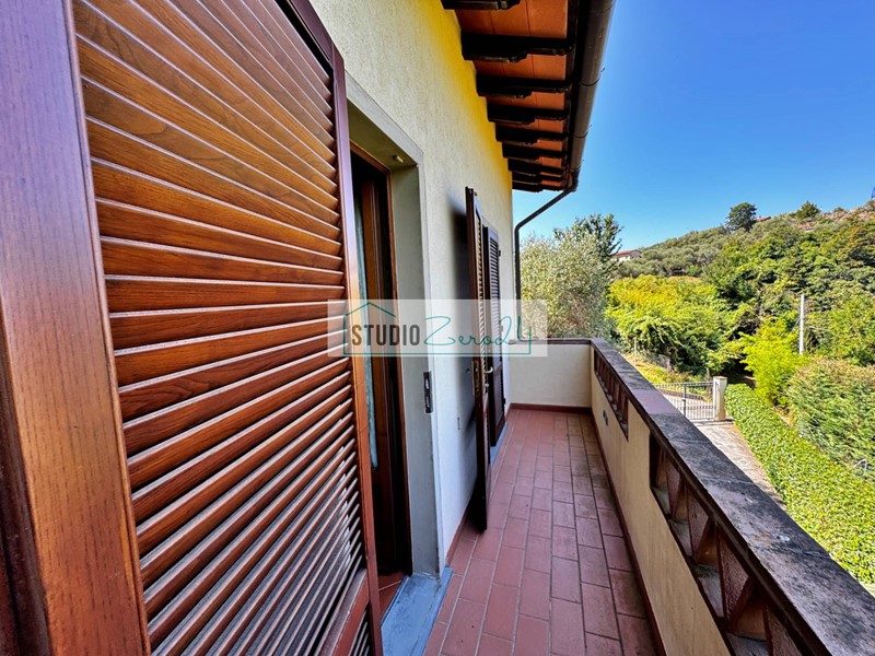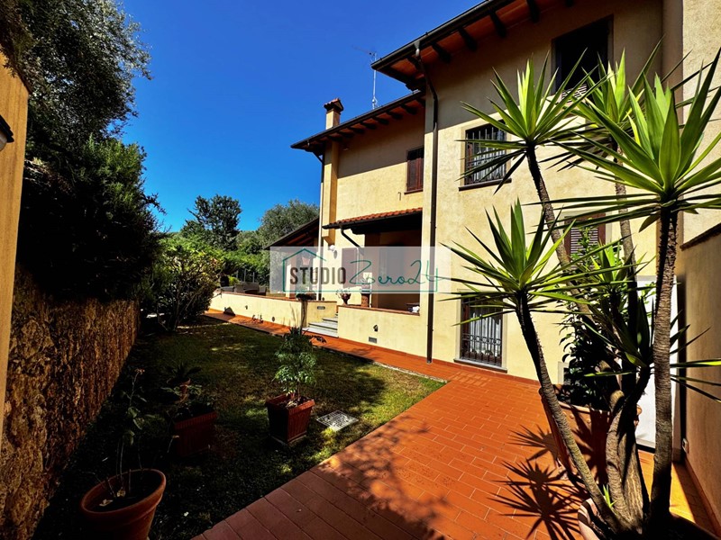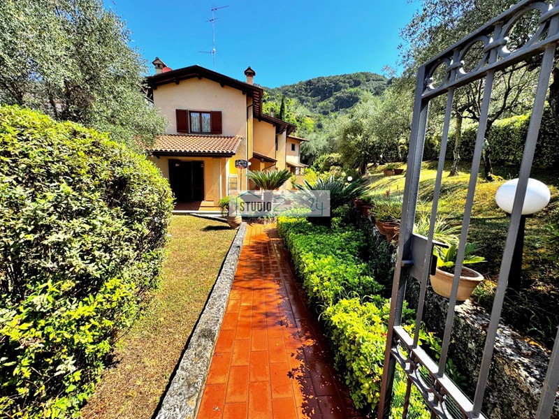 In prima collina a Pietrasanta, a breve distanza dal centro di Pietrasanta, proponiamo in vendita questa graziosa villa bifamiliare in ottimo stato, con giardino privato, terrazzamento con ulivi e vista panoramica. L'immobile dispone di due ingressi: uno pedonale che conduce al giardino, e uno carrabile con cancello che porta al garage con tre posti auto. Internamente la proprietà è così composta: entrando ci accoglie un luminoso soggiorno con camino con portafinestra da cui si accede poi a un ampio terrazzo e grande tavolo da pranzo, cucina in stile toscano e bagno con doccia. Un corridoio conduce alle scale che portano al piano seminterrato, composto da una spaziosa taverna, una stanza armadio utilizzabile come camera, lavanderia con wc e doccia e accesso al garage. Al piano superiore, accediamo alla zona notte dove si trovano la camera padronale, un bagno, una seconda camera di medie dimensioni e un'altra stanza armadio. Tutte e tre le camere hanno accesso diretto a un ampio balcone con vista panoramica.