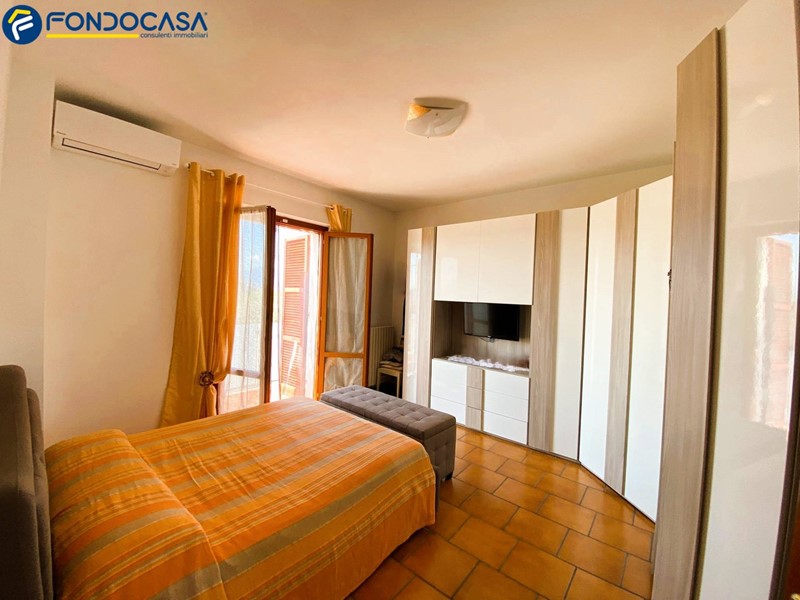 Primo Piano (abitabile): ingresso su zona giorno con caminetto, cucina a vista, ampio terrazzo panoramico di circa 50 mq con vista su mare e colline, due camere matrimoniali con accesso ai balconi, due bagni e locale lavanderia. Tutti gli ambienti sono luminosi e ben distribuiti.