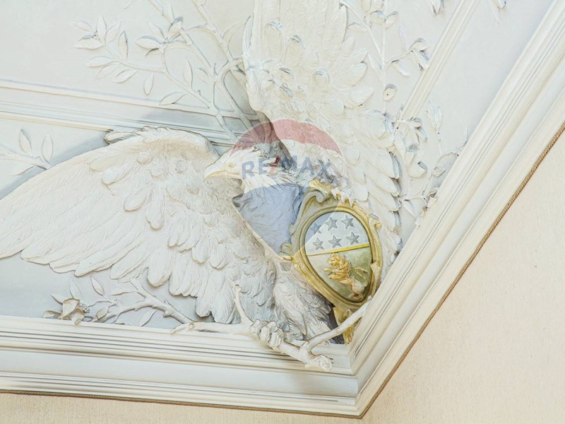 Preziosi sono gli stucchi originali delle volte a cielo di carrozza delle stanze prospicienti su l'affaccio principale.