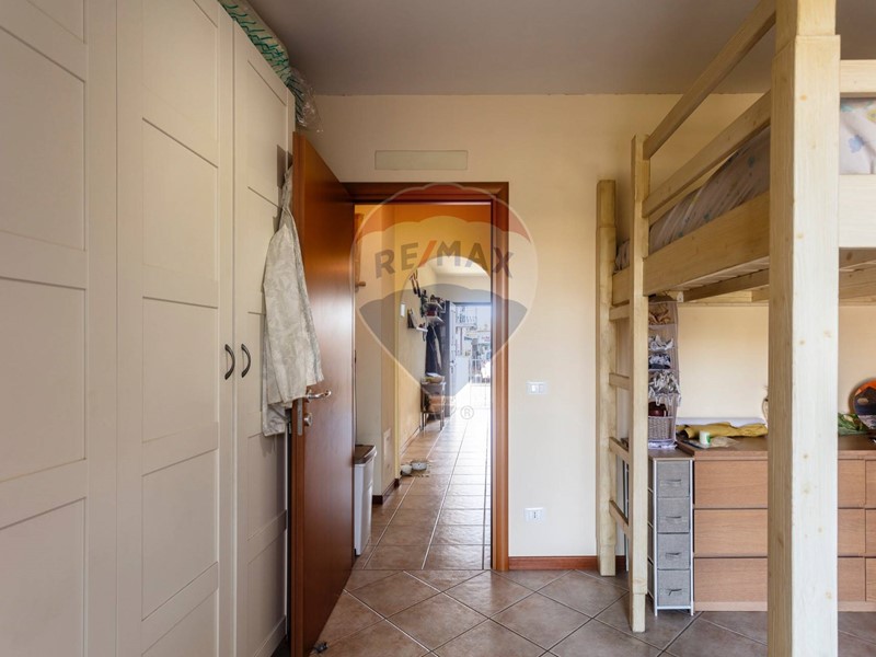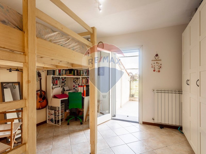 Proseguendo nel corridoio si accede alla zona notte, composta da un bagno senza finestra con doccia e da una camera matrimoniale con ampia porta-finestra, che dà accesso al resede tergale, completo di locale lavanderia/cantina.
