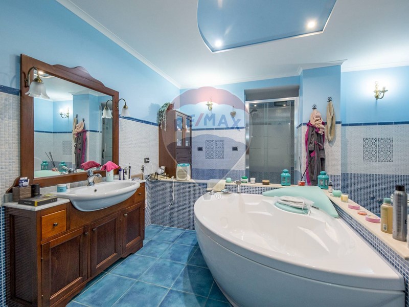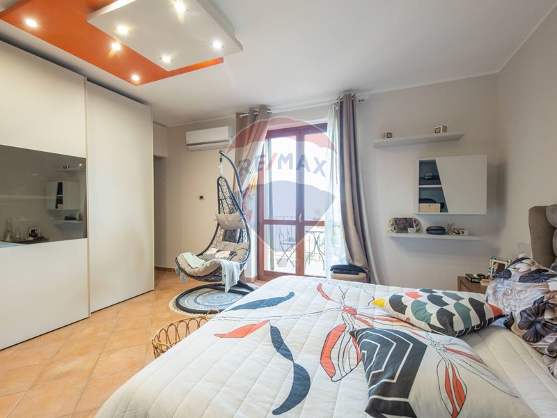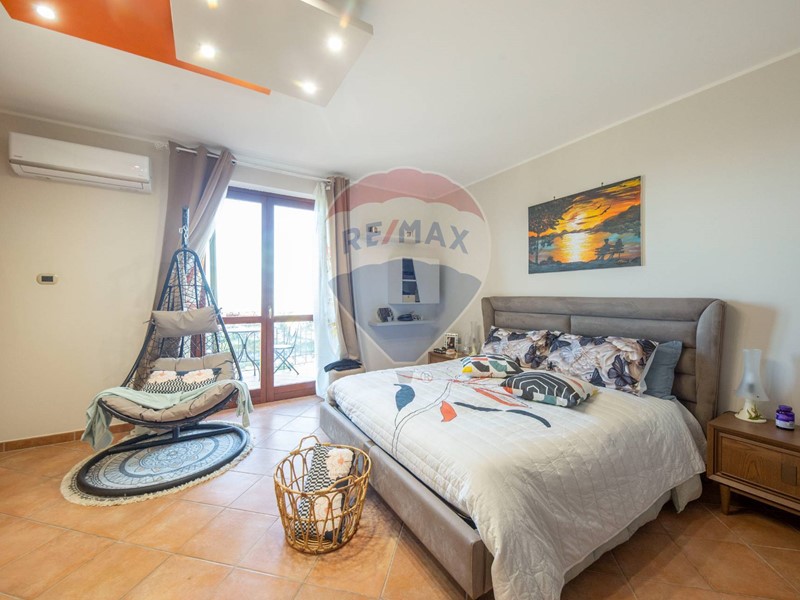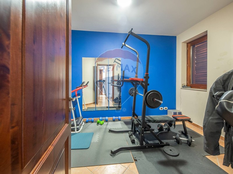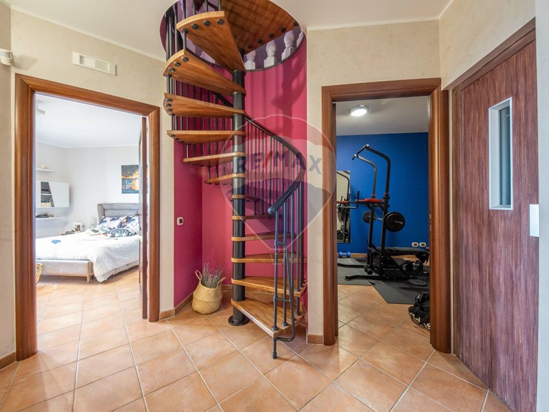 La villa al secondo piano presenta la camera principale, che ha in dote un' ampia cabina armadio e un ampio bagno con vasca idromassaggio e doccia, dalla quale si ha accesso ad un balcone terrazzato che, maggiormente elevato, offre una vista ancora più intensa aperta sul mare allargando il campo visivo, mentre nella parte più interna trovano ubicazione un' altra stanza da letto e un stanza adibita a palestra e un altro comodo bagno.