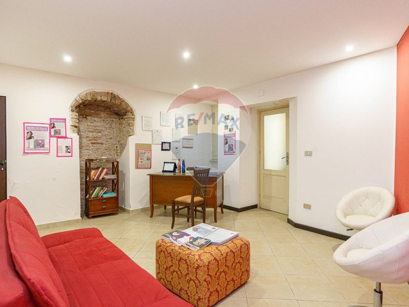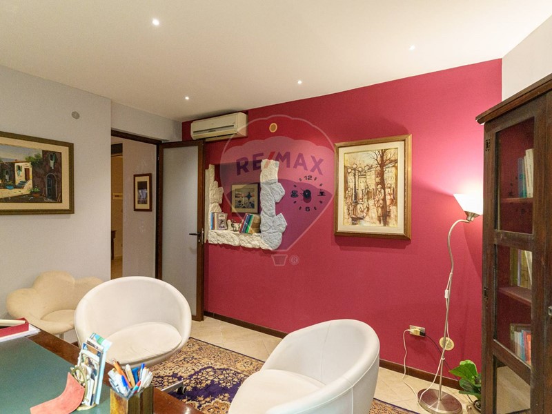 Attualmente ospita uno studio medico, articolato in due ampie sale adibite a reception e sala dattesa, due ambienti destinati a studio privato, un servizio completo, con antibagno, doppia finestra e un ampio ripostiglio, facilmente trasformabile in un secondo servizio o in un pratico cucinino.
