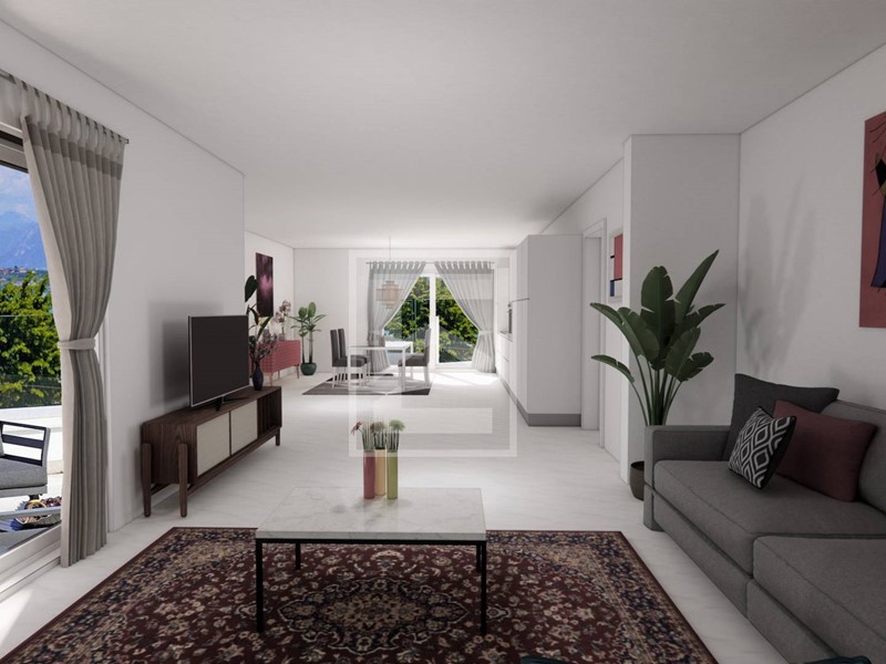 Il living si affaccia su un terrazzo di 25 mq, perfetto per pranzi e aperitivi al tramonto, offrendo una vista lago mozzafiato che trasforma ogni momento in unopera darte.