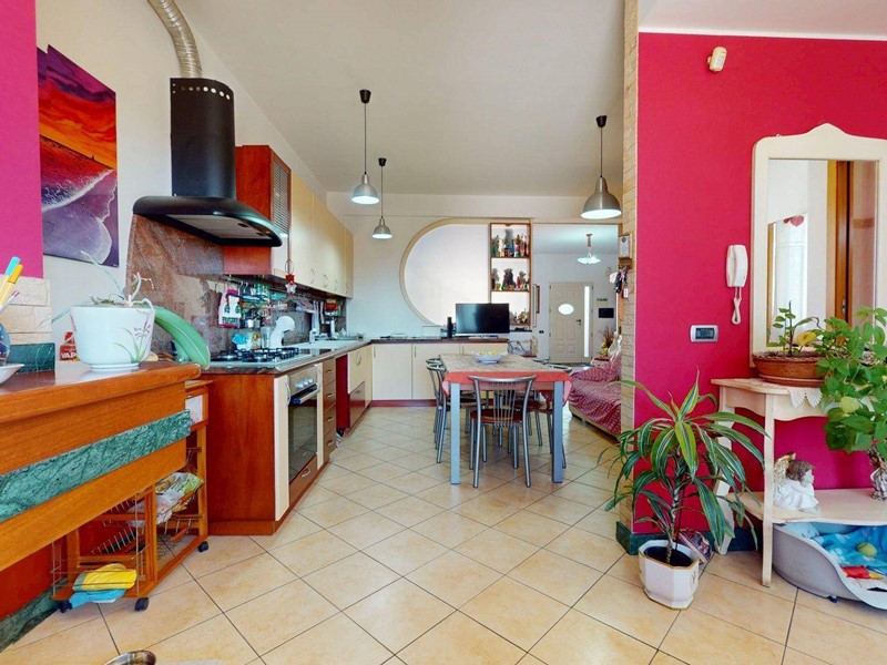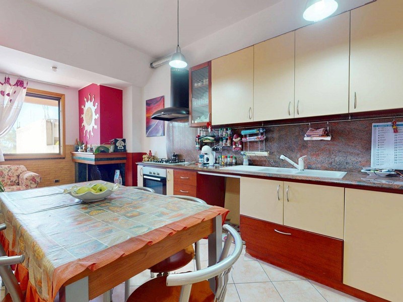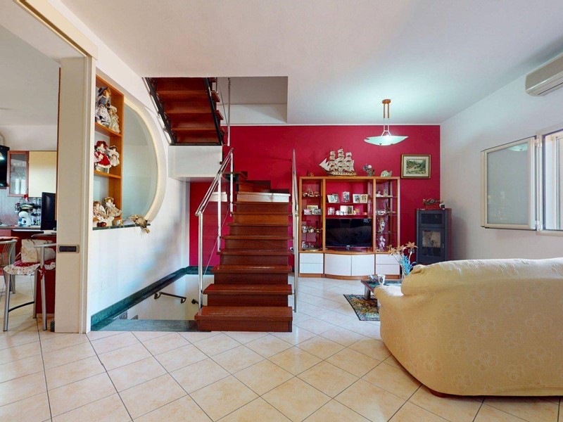 Il piano terra accoglie la zona giorno, luminosa e ben distribuita. Il soggiorno si apre direttamente sulla terrazza-cortile, creando una continuità tra interno ed esterno che rende lambiente perfetto per pranzi allaperto, momenti di relax o convivialità con amici e familiari. La cucina, separata e abitabile, offre ampi spazi per chi ama cucinare e vivere la casa in modo pratico. Sullo stesso livello si trovano anche un servizio e un ripostiglio, che aumentano il comfort e lorganizzazione quotidiana.