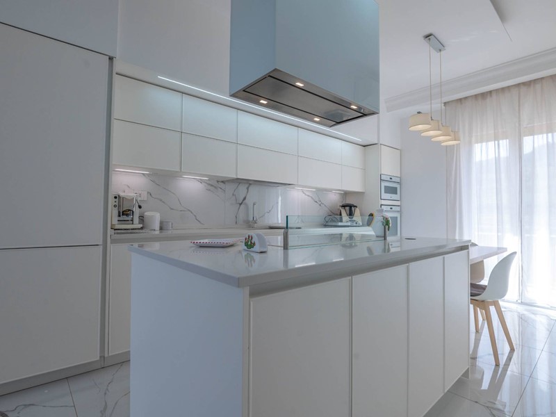 L'ingresso introduce in un'ampia e luminosa zona giorno, composta da un grande soggiorno che si integra perfettamente con una moderna cucina a vista. La zona notte offre due camere da letto con bagno in camera , un bagno per gli ospiti nella zona giorno , oltre a una comoda lavanderia.