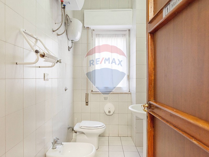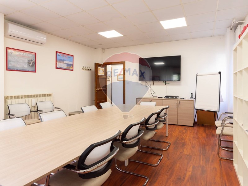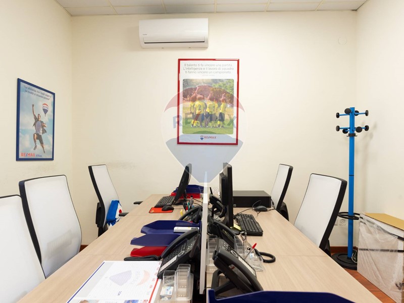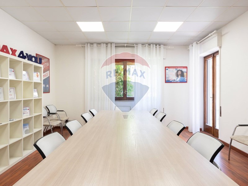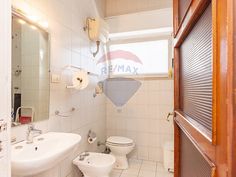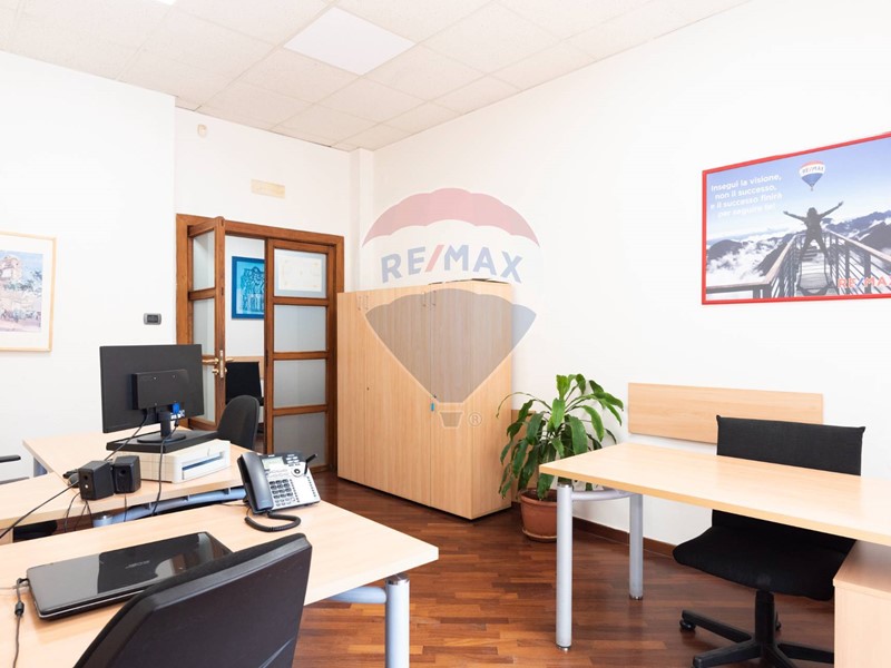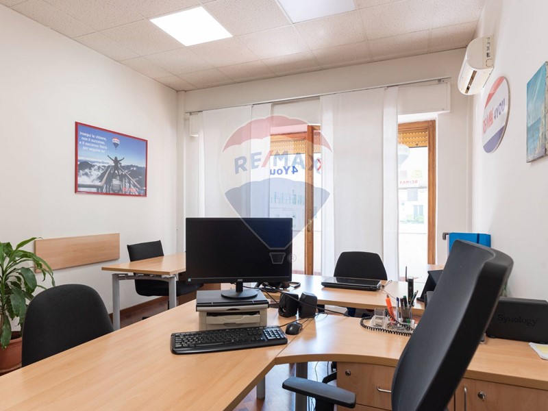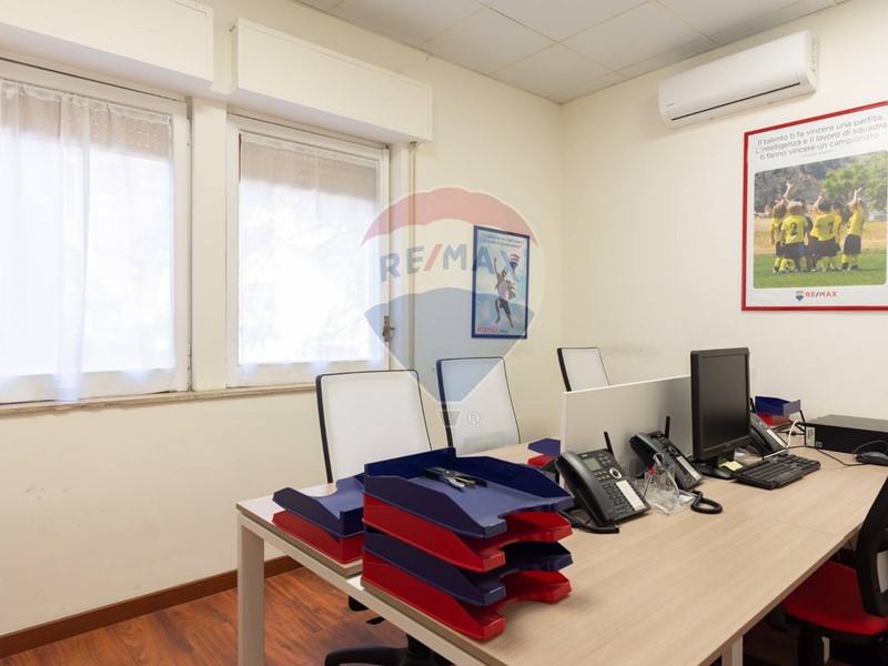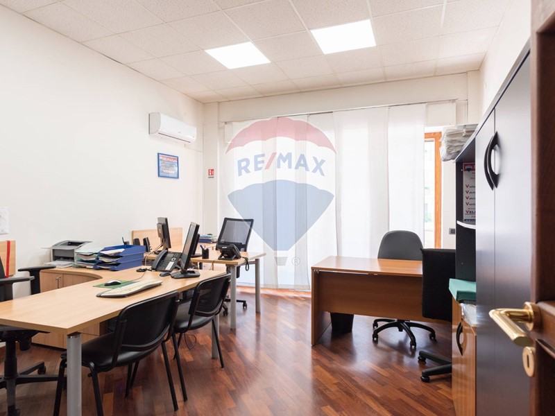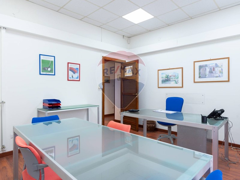 L'appartamento, nel recente passato locato ad uso ufficio, è attualmente composto da ingresso principale, grande corridoio con 4 ampie camere con sbocco diretto sulla balconata terrazzata esposta a Sud, un secondo corridoio con altre 2 camere con affaccio ad est ed a ovest, un grande salone con 3 aperture, 2 servizi, una cucina (da ripristinare, essendo stata eliminata), un ripostiglio ed un secondo ingresso in locale verandato.