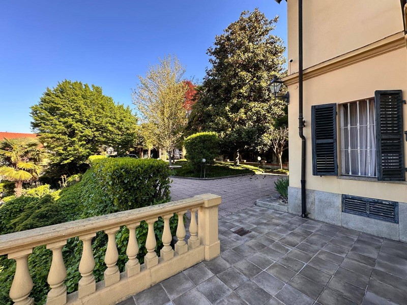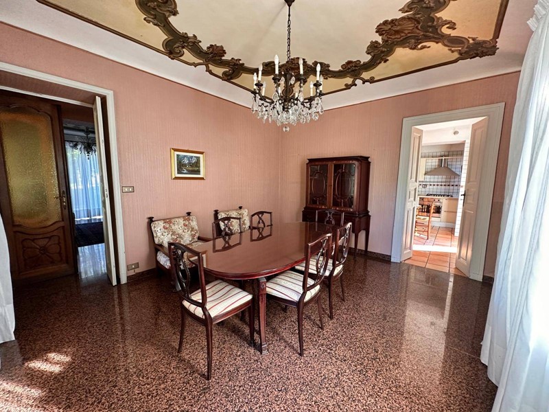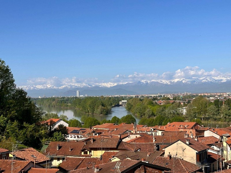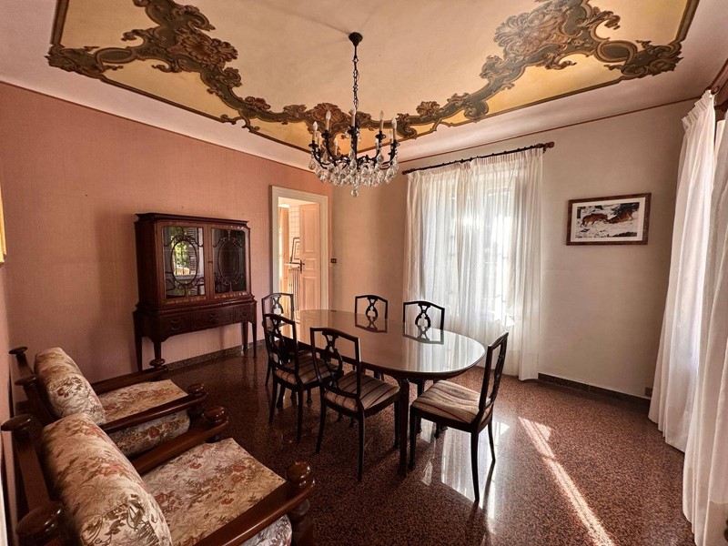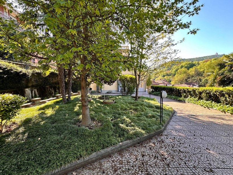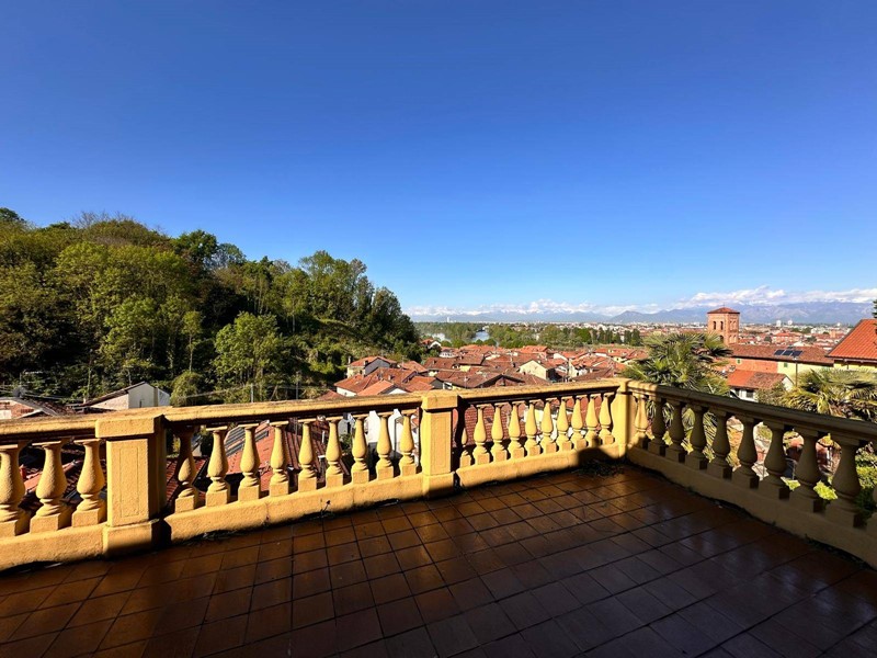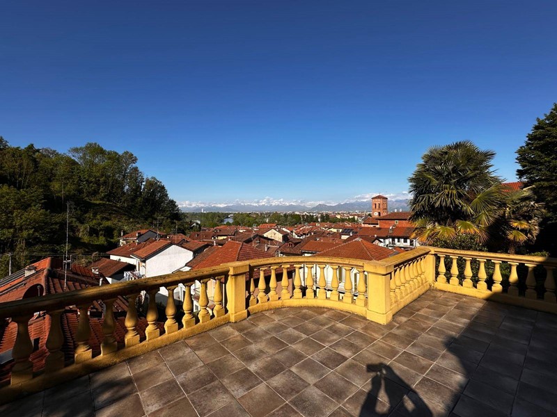 In posizione strategica sulla primissima precollina di San Mauro, con vista panoramica sul fiume e su tutto l'arco alpino, villa indipendente in stile classico di circa 300 mq. La villa è circondata da un ampio giardino pianeggiante e piantumato di circa 1600 mq dove è possibile realizzare una bella piscina. Si accede alla villa dal piano giardino attraversando una suggestiva terrazza ed un ampio portico; dal portone in legno a doppio battente arriviamo su un ampio ingresso, dal quale ci si affaccia a sinistra su salone doppio con soffitti a volta affrecati, mentre a destra si apre l'ampia sala da pranzo anch'essa con il soffitto affrescato, collegata da una grande cucina abitabile; al fondo del corridoio un bagno per ospiti.