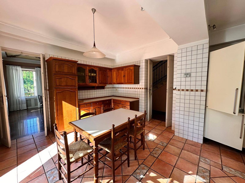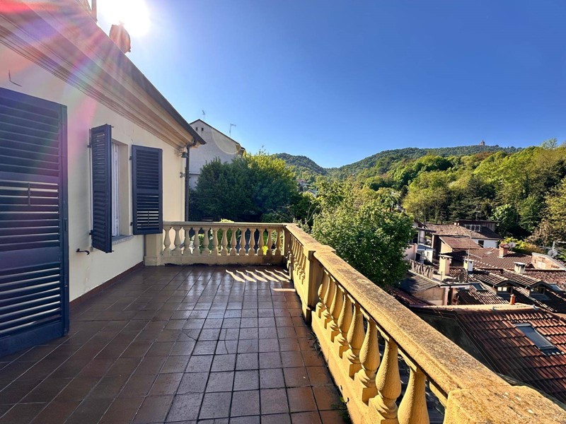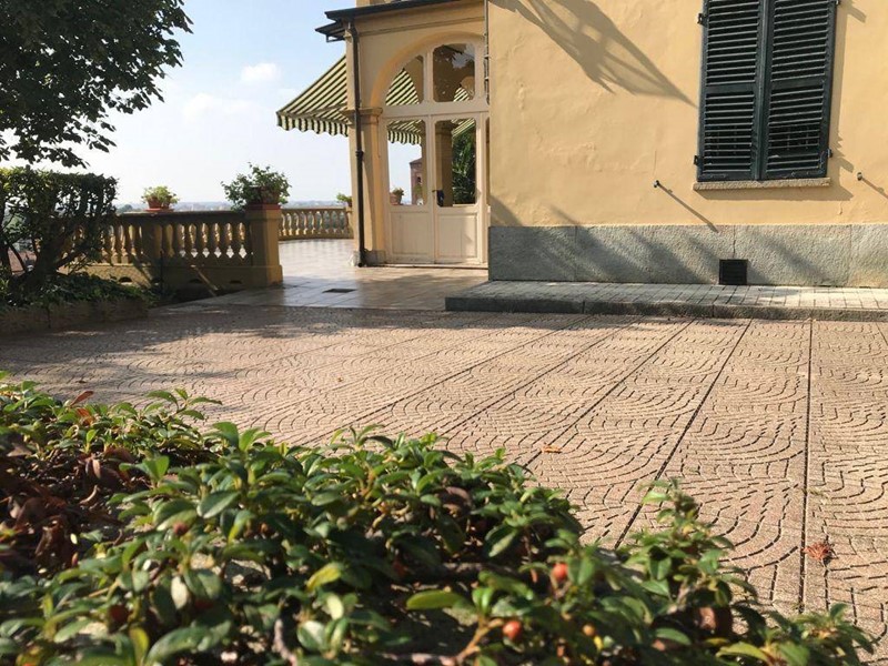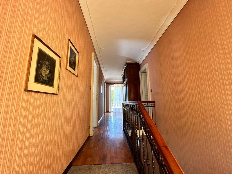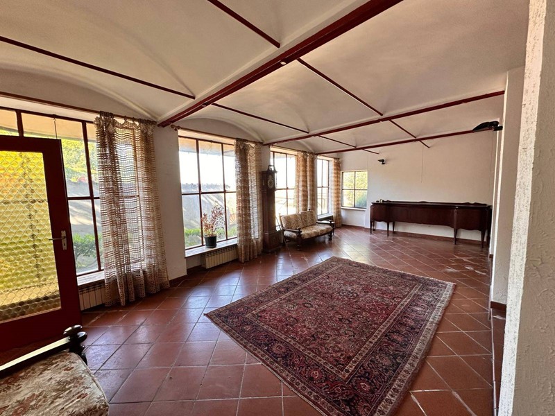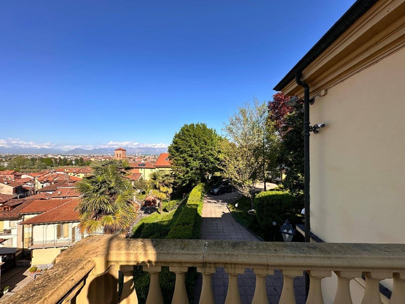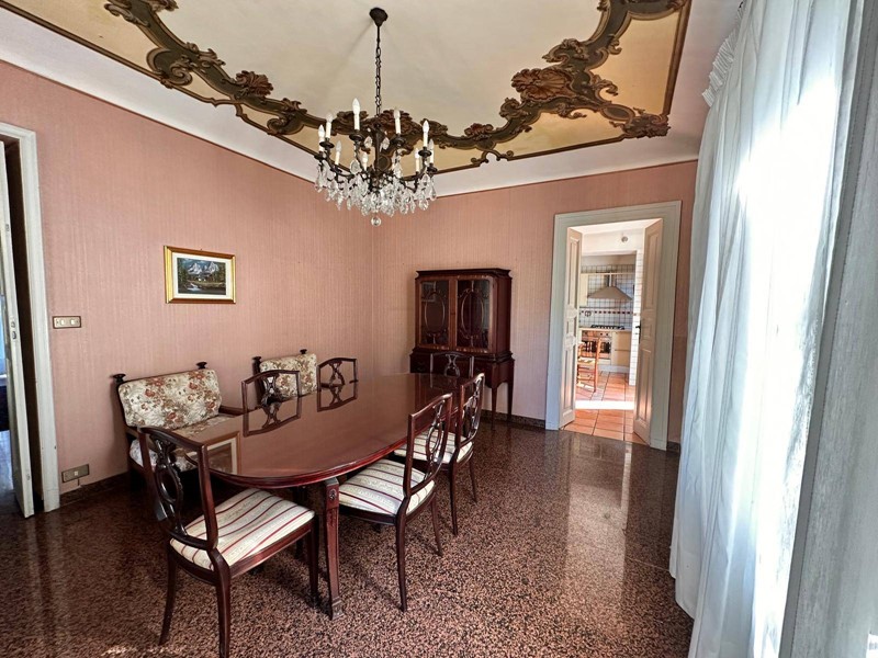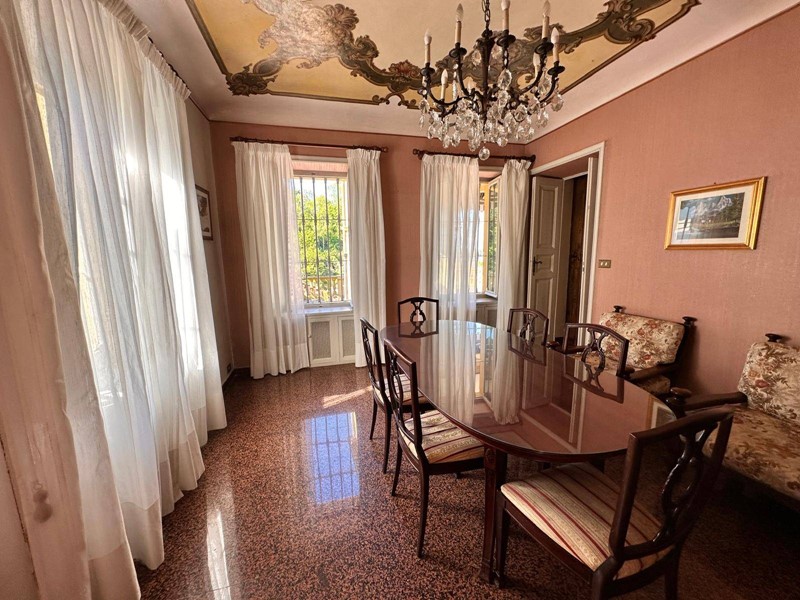 In posizione strategica sulla primissima precollina di San Mauro, con vista panoramica sul fiume e su tutto l'arco alpino, villa indipendente in stile classico di circa 300 mq. La villa è circondata da un ampio giardino pianeggiante e piantumato di circa 1600 mq dove è possibile realizzare una bella piscina. Si accede alla villa dal piano giardino attraversando una suggestiva terrazza ed un ampio portico; dal portone in legno a doppio battente arriviamo su un ampio ingresso, dal quale ci si affaccia a sinistra su salone doppio con soffitti a volta affrecati, mentre a destra si apre l'ampia sala da pranzo anch'essa con il soffitto affrescato, collegata da una grande cucina abitabile; al fondo del corridoio un bagno per ospiti.