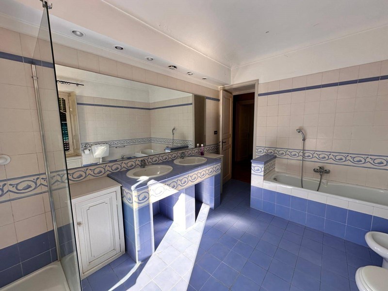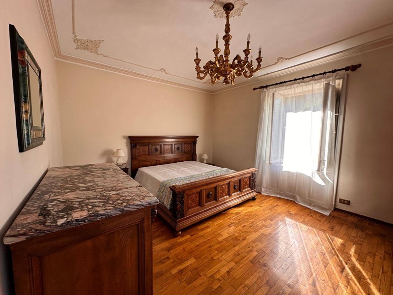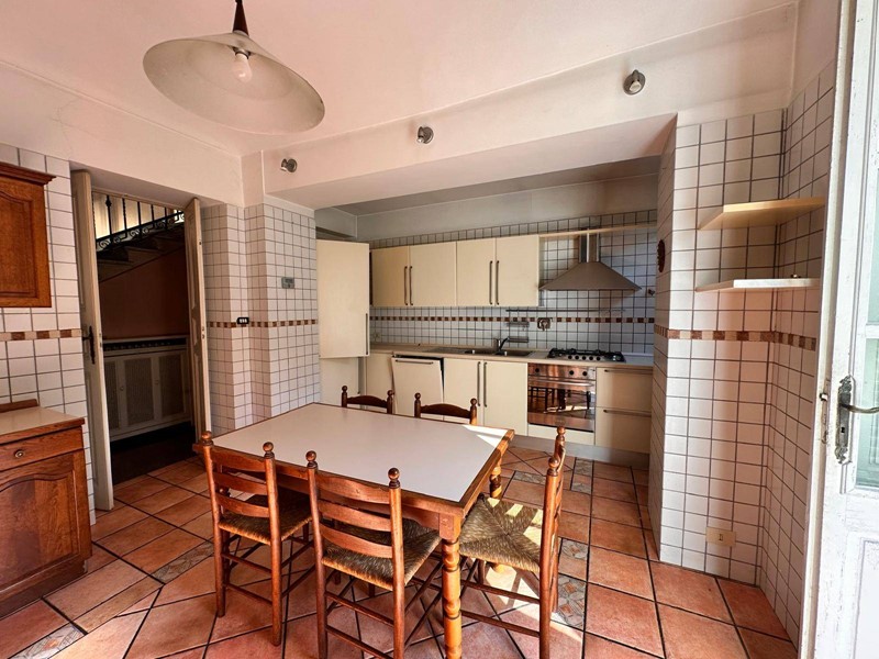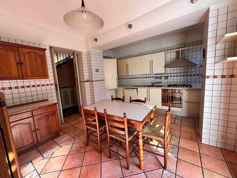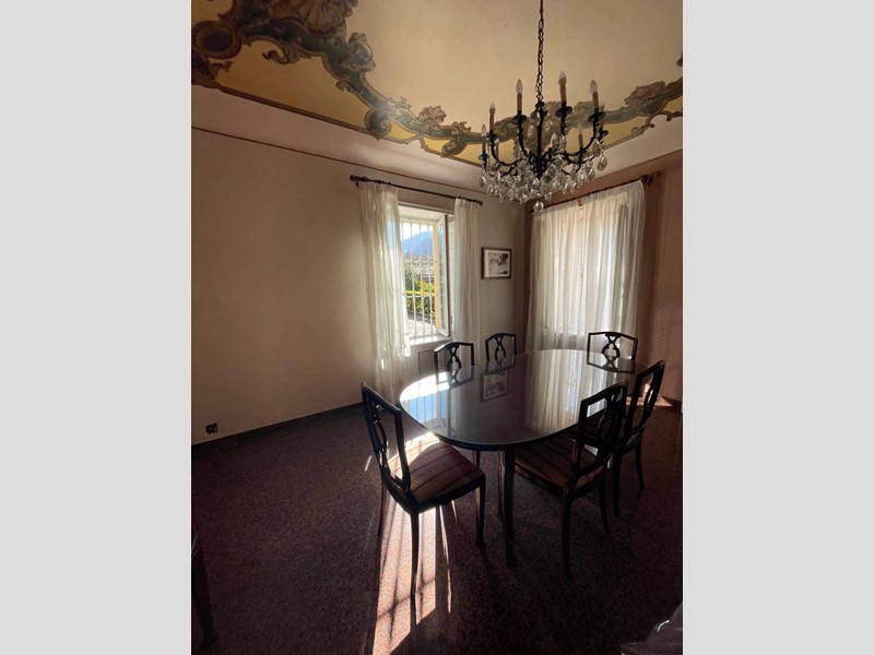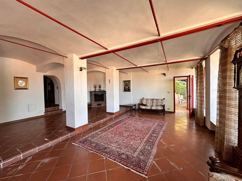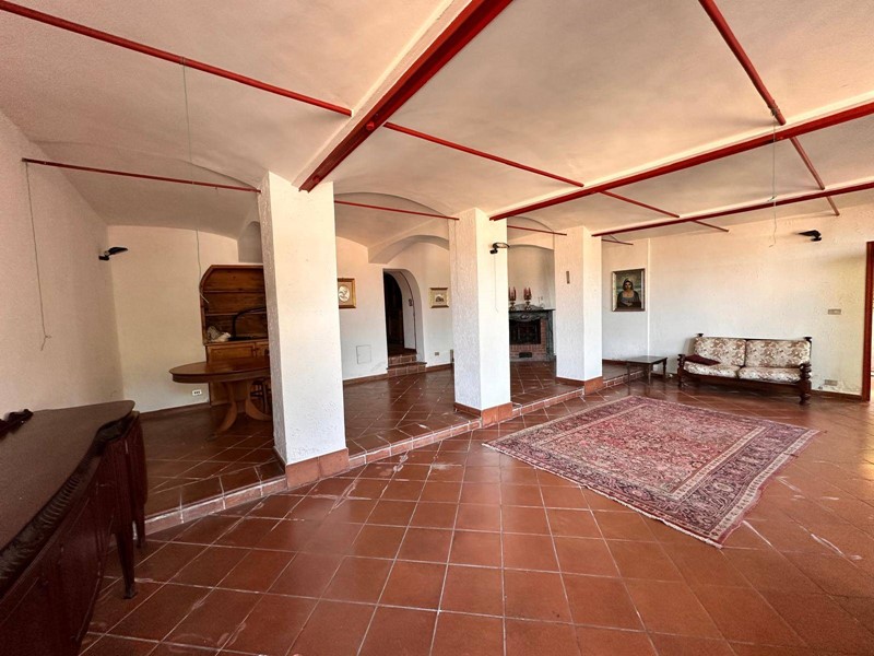 Saliamo dalla ampia scala in pietra originale ed al piano superiore ci sono tre ampie camere da letto con due bagni; grande terrazza panoramica al fondo del disimpegno delle camere con esposizione a pieno sud. Al piano terreno si trova anche una grande sala con camino utilizzata come zona svago, giochi, bigliardo o palestra. Nella parte del seminterrato 2 grandi cantine. Lo stato interno è buono ma richiede una puntuale revisione degli impianti, ed un miglioramento dei serramenti esterni.