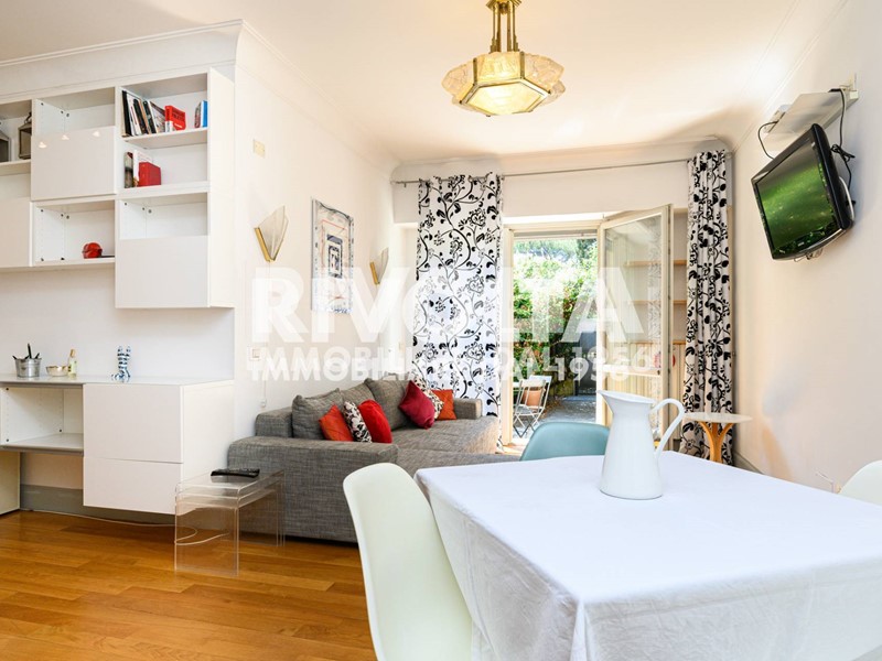 L'immobile è composto di ampio ingresso, soggiorno luminoso esposto a sud, con porta finestra che conduce direttamente al giardino privato, cucinotto ben distinto dal soggiorno, camera matrimoniale e bagno con vasca idromassaggio; completano la dotazione dell'immobile le tapparelle elettriche, due condizionatori e pavimentazione in parquet.