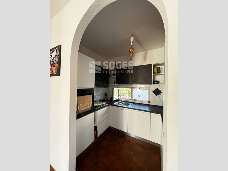 L'immobile, accessibile tramite scale esterne, si compone di: ingresso, disimpegno, bagno, angolo cottura, sala pranzo, soggiorno con camino ed accesso a giardino privato, ove è presente un gazebo ed un angolo BBQ.