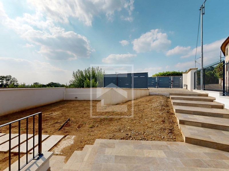 La villa si sviluppa su due livelli fuori terra, per una superficie complessiva di 140 mq, oltre a un ampio piano interrato. Al piano terra si viene accolti da un portico. che introduce allingresso principale. Qui troviamo una spaziosa zona giorno, ben distribuita tra soggiorno e zona pranzo, con affaccio diretto sul giardino. La cucina, a vista e abitabile, è ideale per chi ama vivere la casa con convivialità. Sempre al piano terra è presente un comodo bagno.