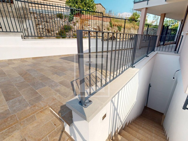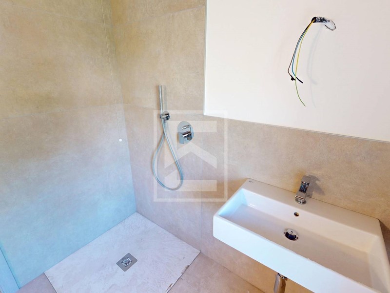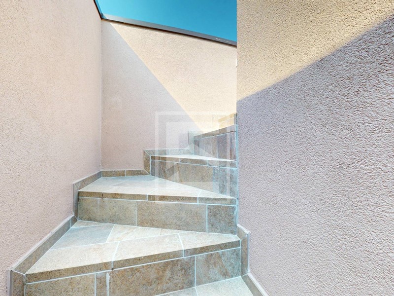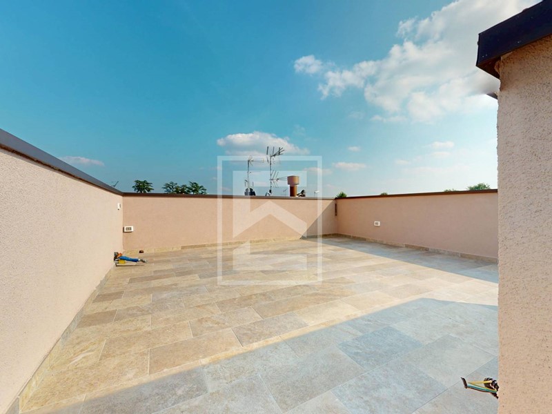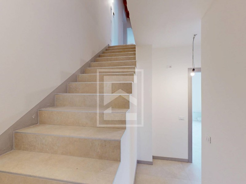 Salendo al primo piano si accede alla zona notte, dove si sviluppano ambienti ben proporzionati e illuminati da grandi aperture. Due camere da letto matrimoniali, ognuna col suo bagno finestrato. Una di queste dispone anche di area guardaroba con spazio per cabina armadio. Questo piano è impreziosito da un terrazzo. Una seconda scala porta all'esclusivo solarium panoramico sul tetto, pensato come spazio privato e rilassante da cui godere di viste aperte e momenti di tranquillità allaria aperta.