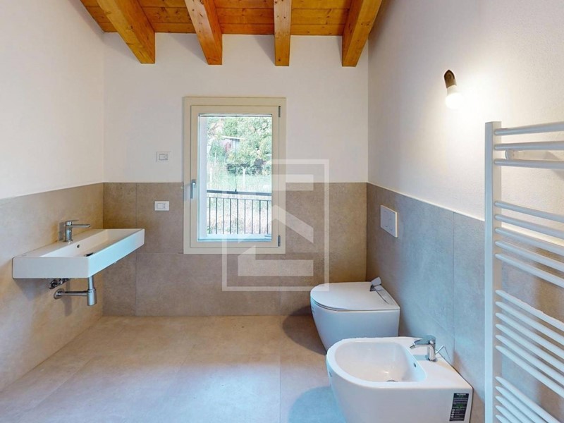 La villa è dotata delle più moderne soluzioni impiantistiche: riscaldamento a pavimento, isolamento a cappotto, infissi in alluminio con triplo vetro, oltre a un caminetto che aggiunge un tocco di calore e raffinatezza agli interni. Le travi a vista donano carattere agli ambienti.