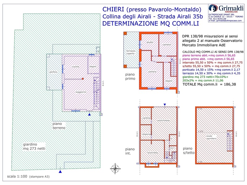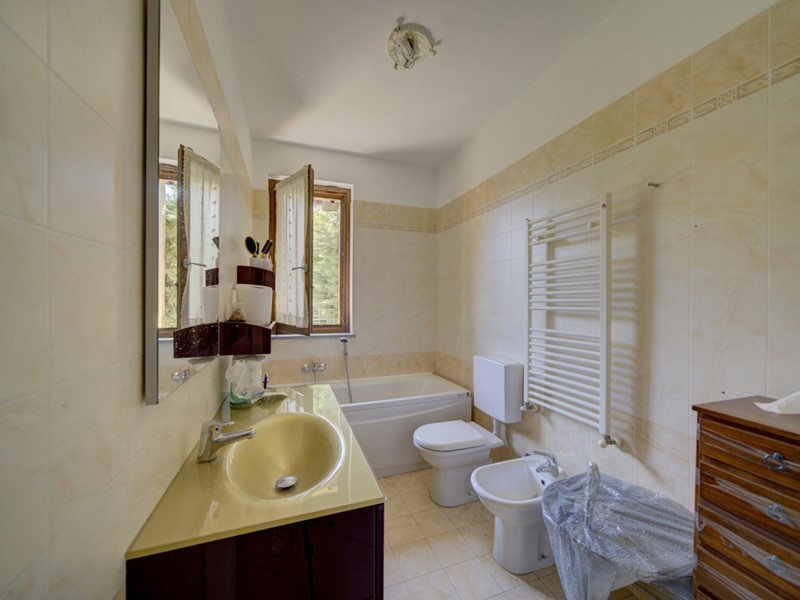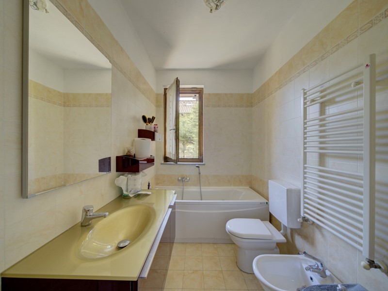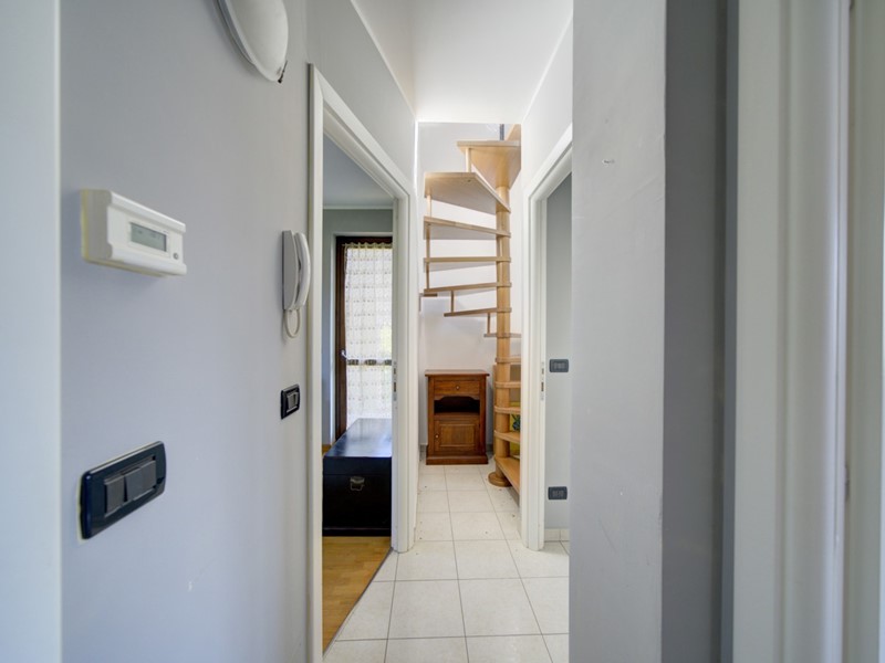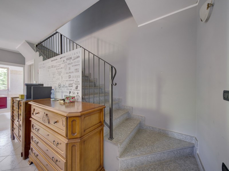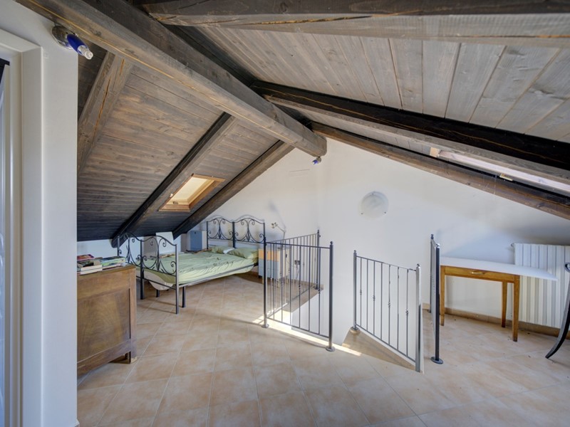 La villa è composta, al piano terreno, di soggiorno, ampia e luminosa cucina con accesso diretto al porticato, bagno; al primo piano grande camera, altra camera, bagno e studio con accesso a terrazzo coperto; al piano sottotetto un ampio locale uso sgombero ben rifinito; infine al piano interrato, anch'esso collegato con scala interna, tavernetta, lavanderia, bagno, due locali cantina e dispensa, nonché autorimessa.