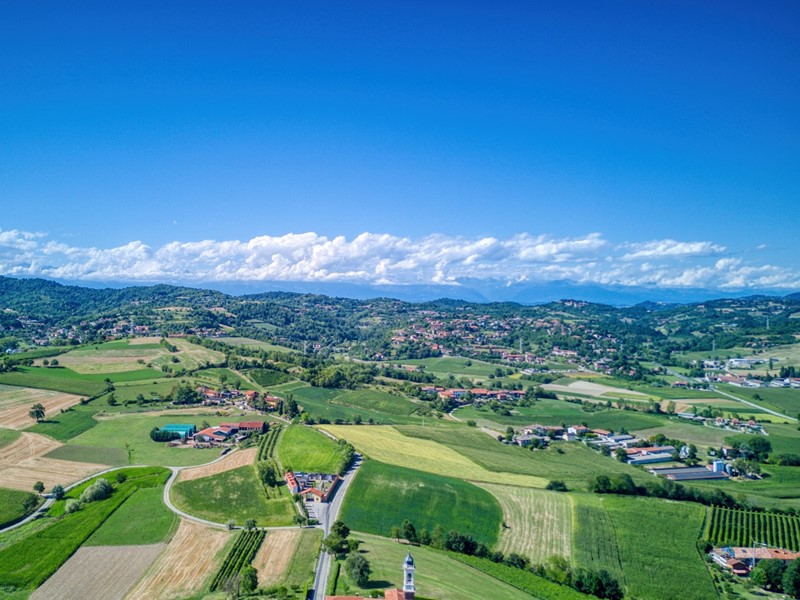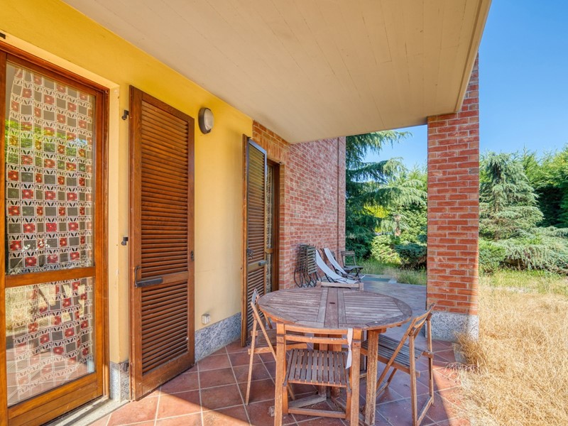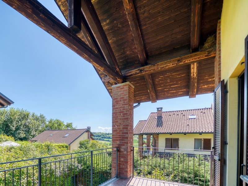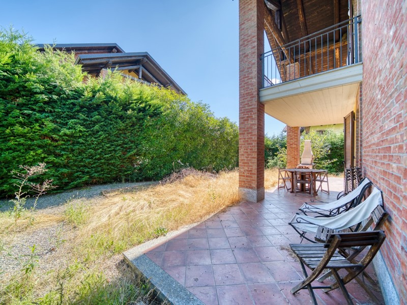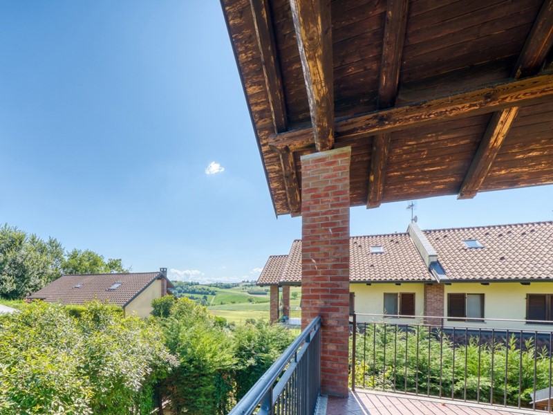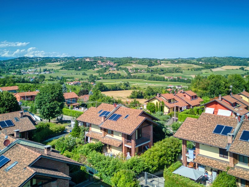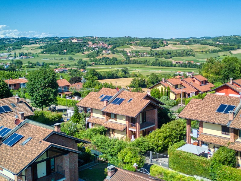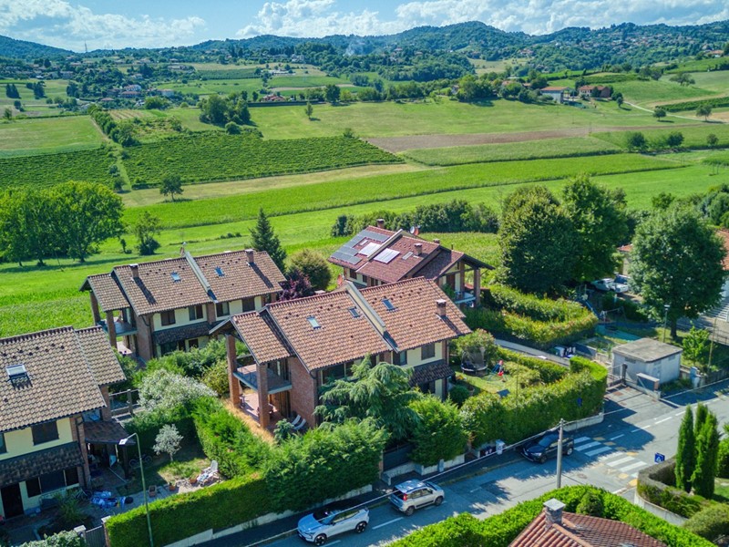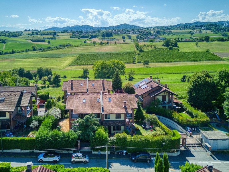 In recente villaggio in cima alla collina degli Airali (fronte castelli Montaldo e Pavarolo) villa libera tre lati esposta ad Est, Sud ed Ovest, servita dalla Strada della Rezza, panoramica e comoda alla Città di Torino e Chieri.