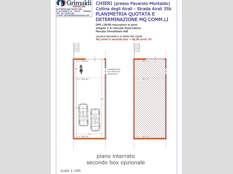 Volendo è disponibile una grande autorimessa di 67 mq comm.li, con altezza cm 365, al prezzo di euro 38.000.