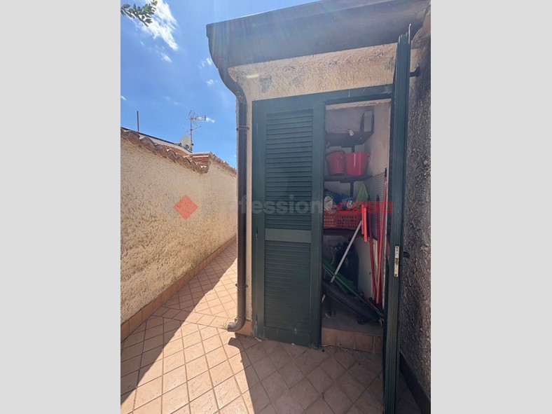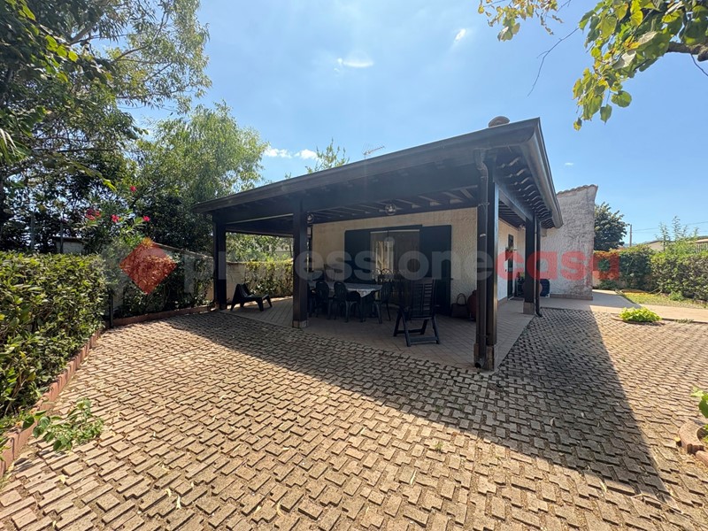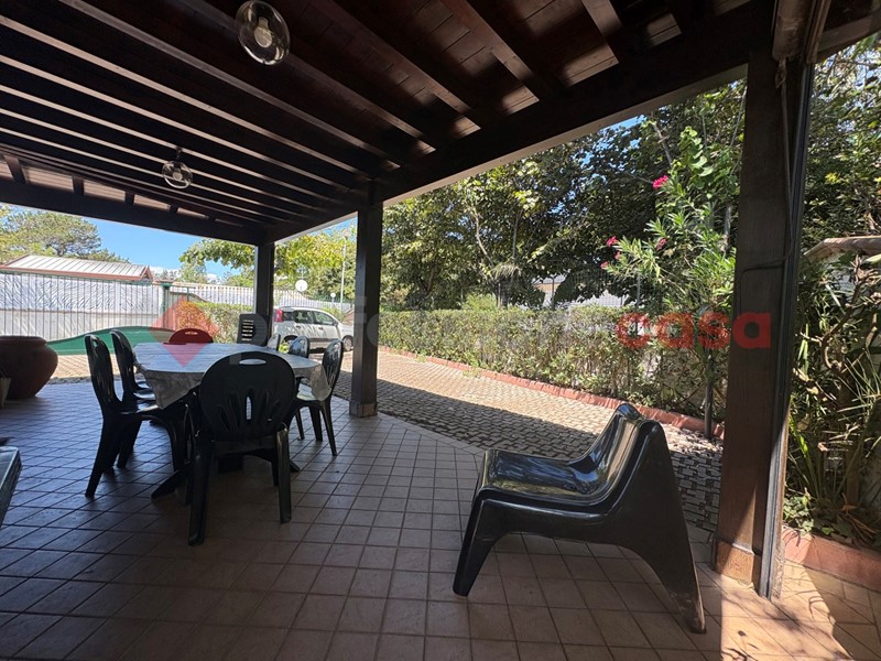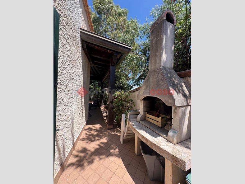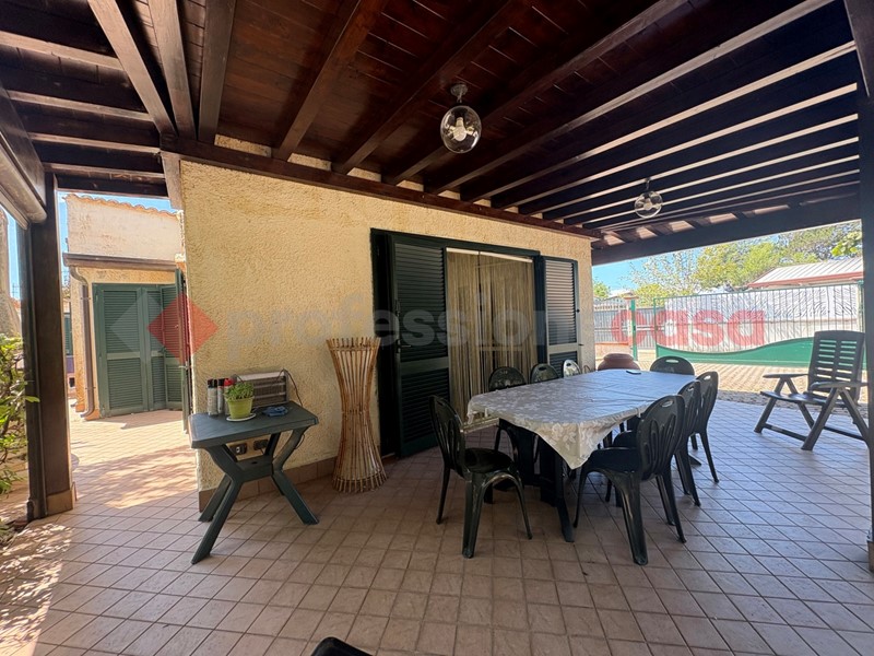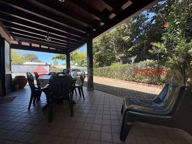 L'esterno è caratterizzata da una magnifica ed ampia veranda di 82 mq, spazio ideale per momenti di relax e convivialità, dove è possibile posizionare tavoli sedie e divanetti. Completa la proprietà un barbecue in muratura, un locale esterno come ripostiglio, ed un bagnetto esterno dotato di doccia e finestra, ideale per quando si rientra dalla spiaggia.