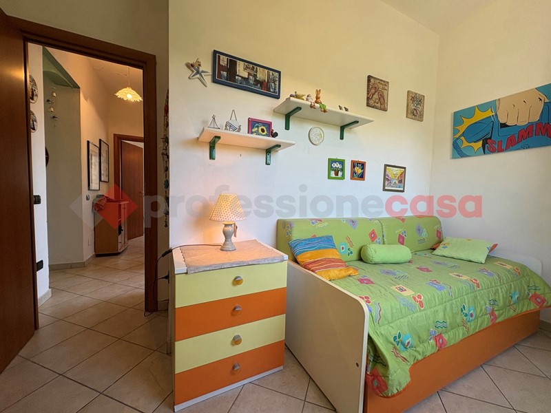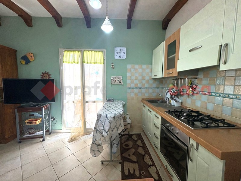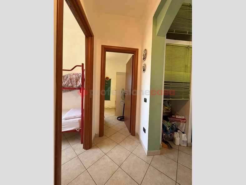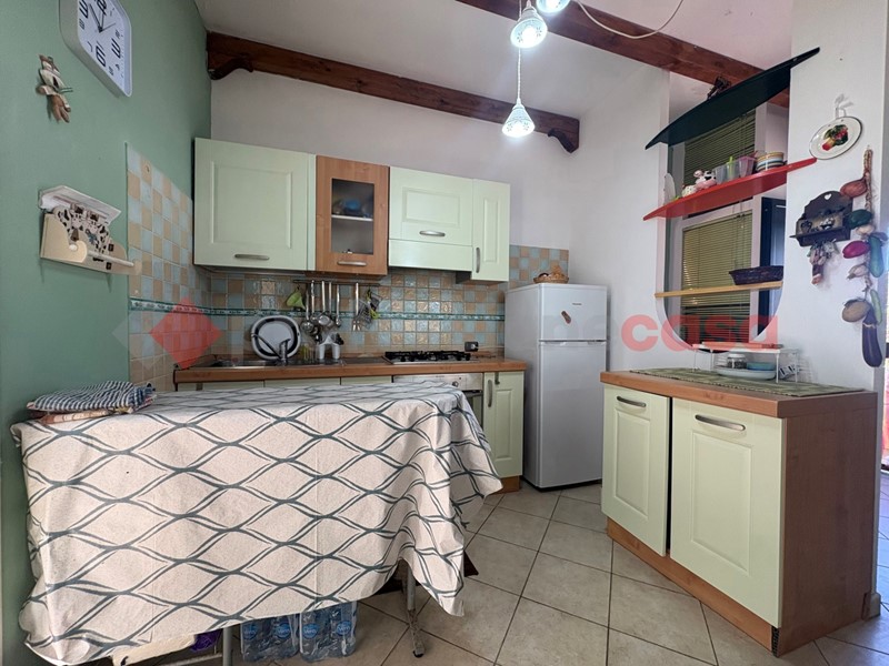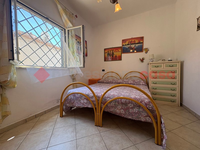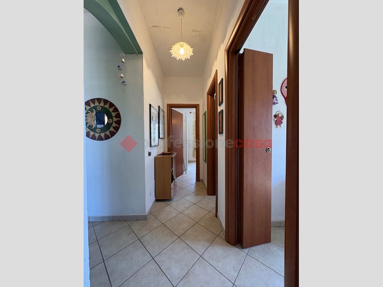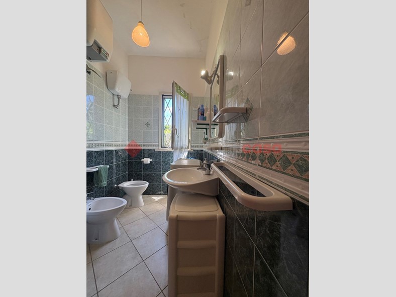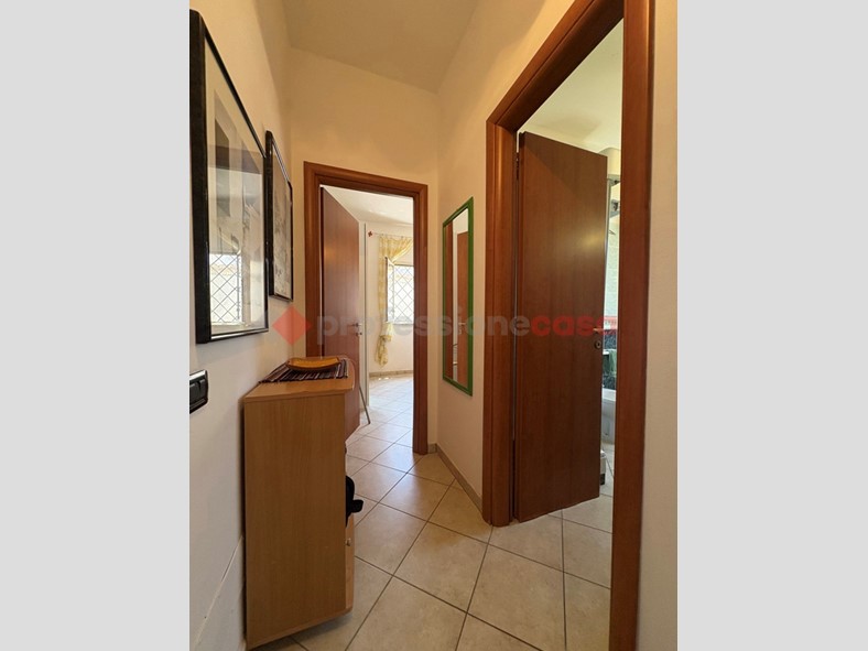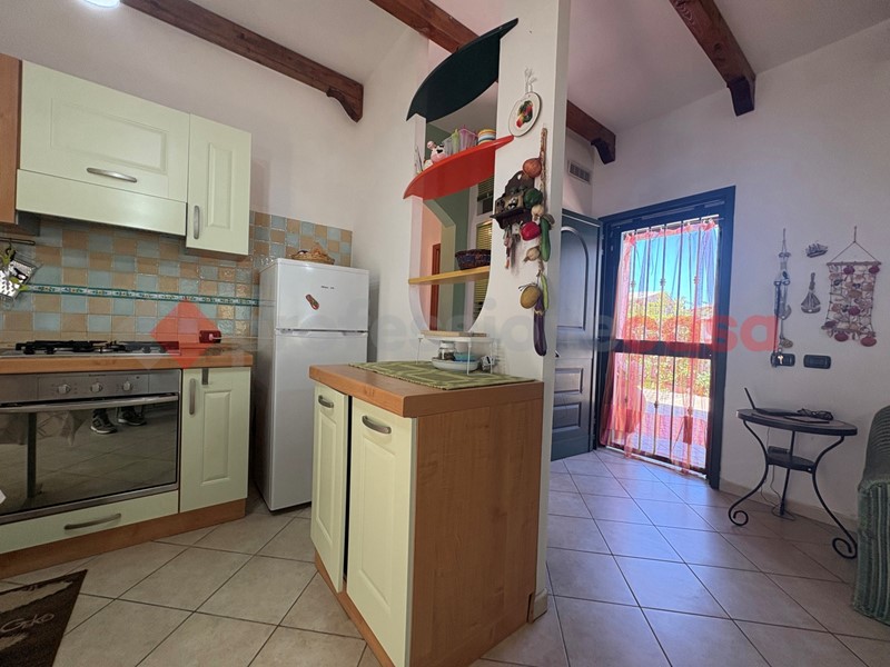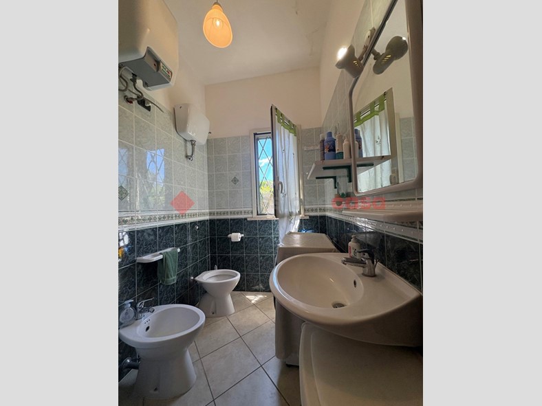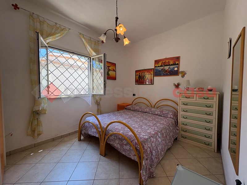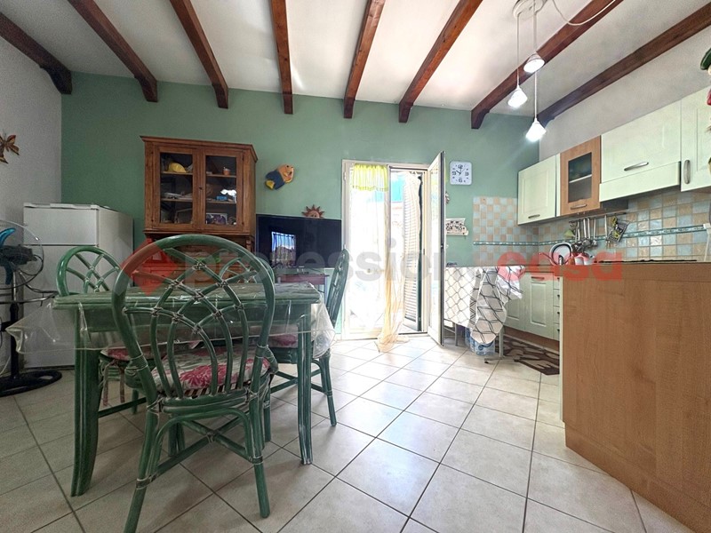 L'ingresso si apre su un luminoso ed ampio living con angolo cottura, avente due porte finestre che danno una sul giardino ed una sul portico. A seguire un disimpegno ci conduce ad un bagno con doccia, una camera matrimoniale ed altre due camerette. Nonostante l'assenza di condizionatori, risulta essere molto fresca e ventilata grazie agli alberi ad alto fusto che forniscono frescura ed anche grazie all'immediata vicinanza del mare.