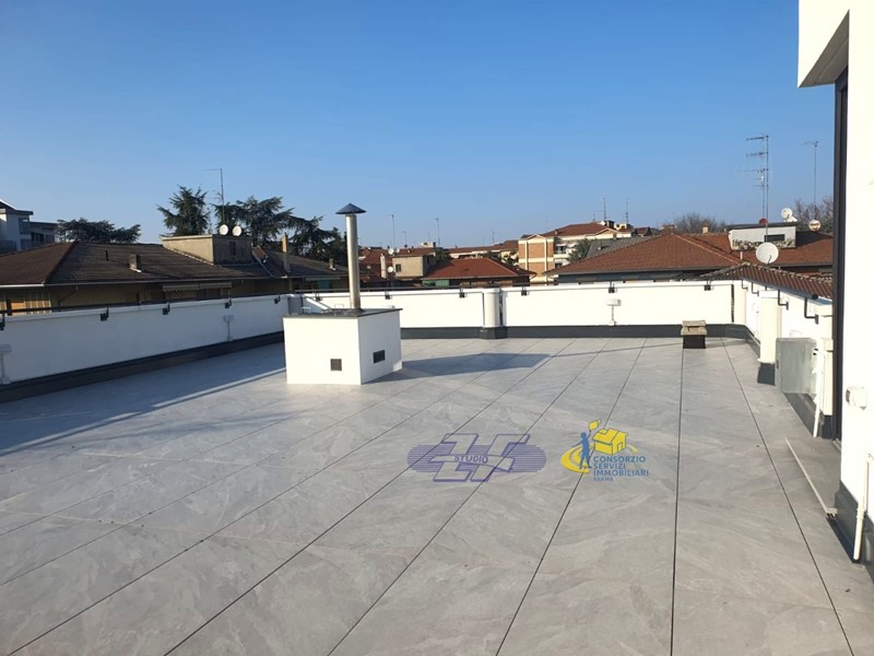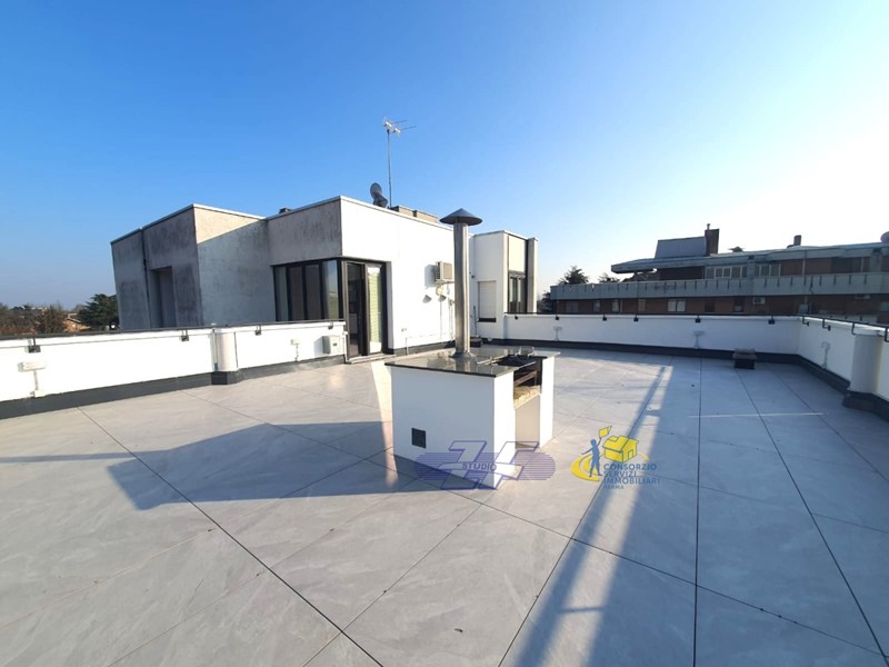 VIA DE GASPERI - in una delle zone più belle della città, si vende elegante ATTICO di 146 mq commerciali, di cui 98 mq di appartamento, 115 mq di TERRAZZO oltre a due loggette coperte; L'immobile è posto al piano quinto ed ultimo di una palazzina munita di ascensore. L'appartamento è stato recentemente ammodernato, tinteggiato a nuovo, è stata sostituita la maggior parte delle finestre ed è stato completamente ristrutturato il terrazzo, rifacimento pavimentazione e guaina sottostante, illuminazione notturna e parapetto messo a norma di legge. E' composto da una cucina abitabile, un ampio e luminosissimo soggiorno suddiviso in zona pranzo e salotto dal quale si accede al meraviglioso terrazzo che nelle stagioni soleggiate funge da seconda zona giorno a cielo aperto, è infatti munito di uno splendido barbeque per godersi appieno pranzi e cene con amici, il sistema di illuminazione permette di sfruttare questo meraviglioso spazio anche al calar del sole; la zona notte è composta dal corridoio di disimpegno, dotato di un armadio a muro molto capiente, dal quale si accede alla camera matrimoniale ed alla camera singola, utilizzabile anche come studio a seconda delle esigenze, entrambe con l'accesso al balcone coperto in comune, ed al servizio igienico, un comodo antro del salotto permette la creazione di un ulteriore servizio igienico, proprio di schiena a quello già esistente, con accesso alla comoda loggetta. L'appartamento è termoautonomo ed è dotato di impianto di climatizzazione. Unico immobile del piano, permette di avere indipendenza sfruttando anche lo spazio del pianerottolo di ingresso e, non avendo vicini ai lati e sopra, gode di una tranquillità unica. Di pertinenza all'appartamento una cantina ed un garage doppio al piano seminterrato. Richiesta economica € 375.000. Per info Francesca 347 0919662.