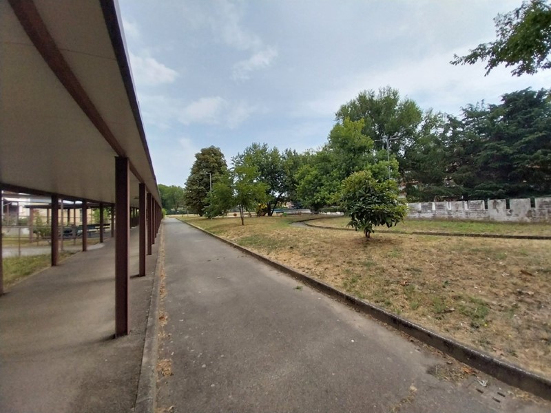 Lato giardino presenti: pensilina con panchine, posto bici, Circolo privato (Bar), Campo da Calcio, giochi per bambini, ampie aree verdi con panchine, area per corsi di pattinaggio, campo pallavolo, area cani, etc..