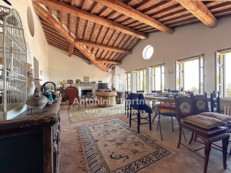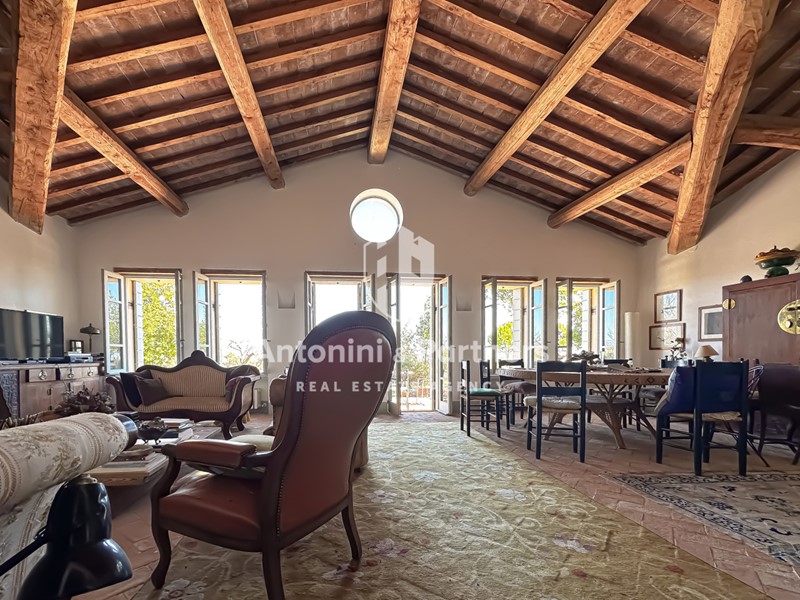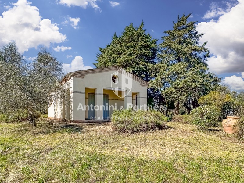 L’omaggio all’antica Grecia si un nobile erudito, posta alla sommità di un verde colle dal quale gode di una vista spettacolare sulla rigogliosa campagna circostante e sulle mura urbiche della città di Todi che si compone di: un’elegante villa padronale, una dependance con portico, un'ampia corte esterna completamente recintata e terreno agricolo.