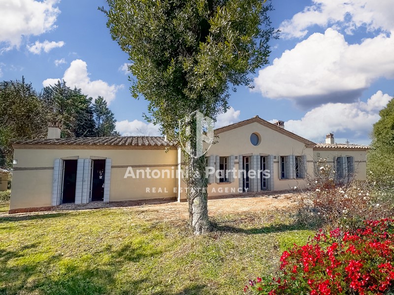 La villa unica nel suo genere, eccelle per la sua sobria eleganza. Esternamente presenta eleganti facciate intonacate di fresco, tetti spioventi e rigore delle forme. Internamente, tutti gli ambienti sono spaziosi, molto luminosi e impreziositi da: alti soffitti in legno e pianelle, pavimenti in cotto artigianale e camini in pietra.