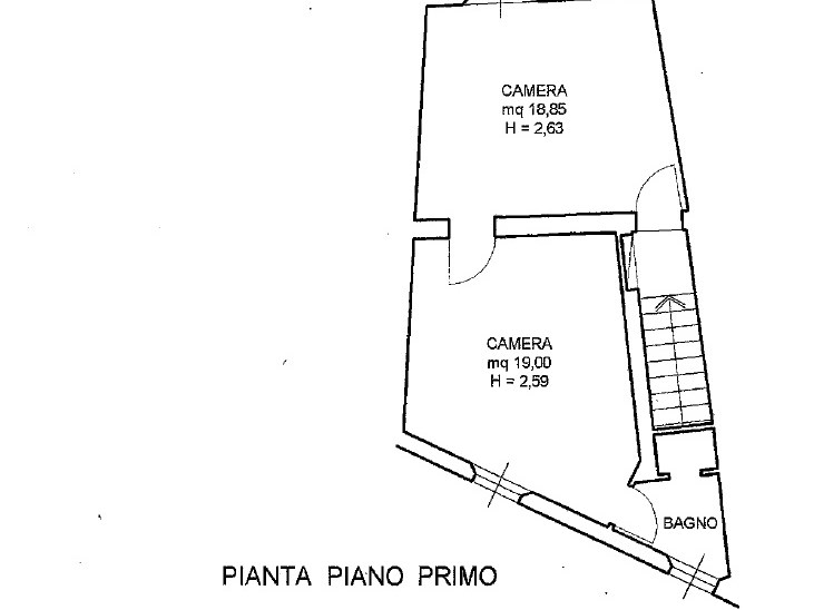 PIANO PRIMO: ingresso al piano terra autonomo da quello del rustico - scala - due camere da letto grandi - bagno e ripostiglio
