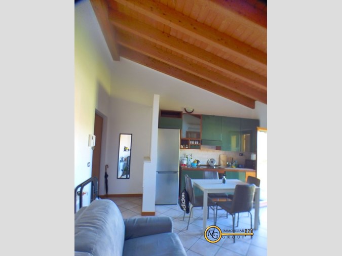 Liscate - in zona residenziale proponiamo appartamento sito al primo ed ultimo piano. La proprietà si compone di ingresso nel locale open/space giorno/notte con cucina a vista e accesso ad vivibile terrazzo con ottima esposizione ad est, disimpegno che conduce al bagno con box doccia. Il riscaldamento è a pavimento e gli infissi sono in legno doppi vetri.\nCompleta la proprietà un posto auto.
