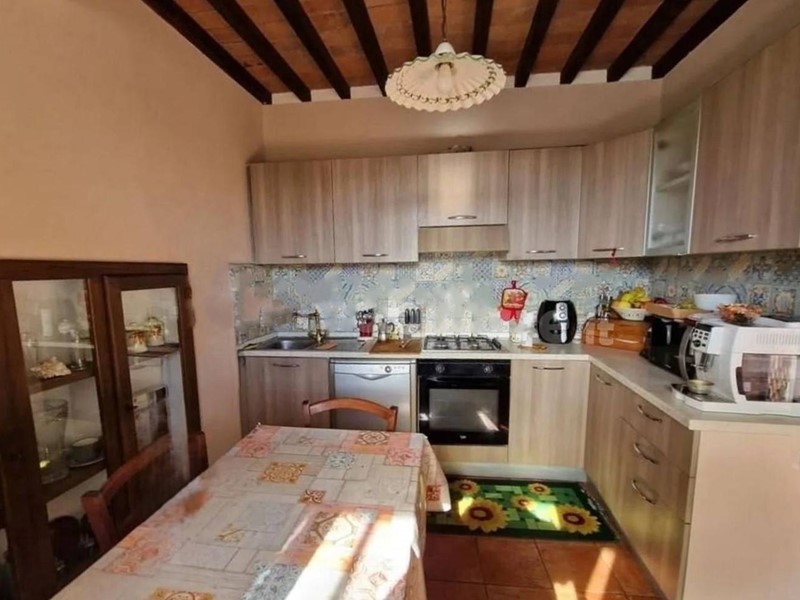 L'abitazione, in perfetto stile rustico toscano con i solai dotati di travi, travicelli e mezzane di cotto, si compone da ingresso, un ampio soggiorno arricchito da una parete di mattoni a vista, un bel camino e un comodo terrazzo; dal soggiorno si accede alla cucina abitabile. Proseguendo da bella parete ad arco di mezzane di cotto si accede alla zona notte dotata di disimpegno, con due camere servite da un bagno finestrato con doccia.