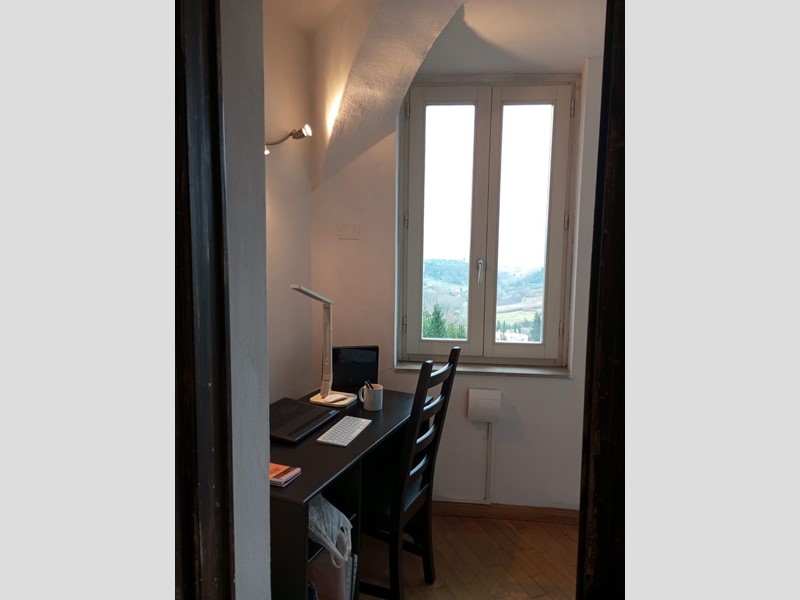 Nel centro storico di San Miniato, appartamento con ingresso indipendente che gode di una magnifica vista sulla campagna e su parte del borgo. L'abitazione è disposta su due piani oltre a soffitta e cantina. Comprende al piano terra un luminoso soggiorno/pranzo con angolo cottura, una camera matrimoniale ed un bagno. Al piano primo trova spazio un'altra zona giorno (cucina/soggiorno), una camera da letto con bagno, un ripostiglio. Dalla soffitta, dove è situato un locale adibito a lavanderia, si accede ad una terrazza coperta. Al piano seminterrato, l'immobile dispone di due ampi vani cantina di circa 50 mq. con accesso diretto all'orto esclusivo.