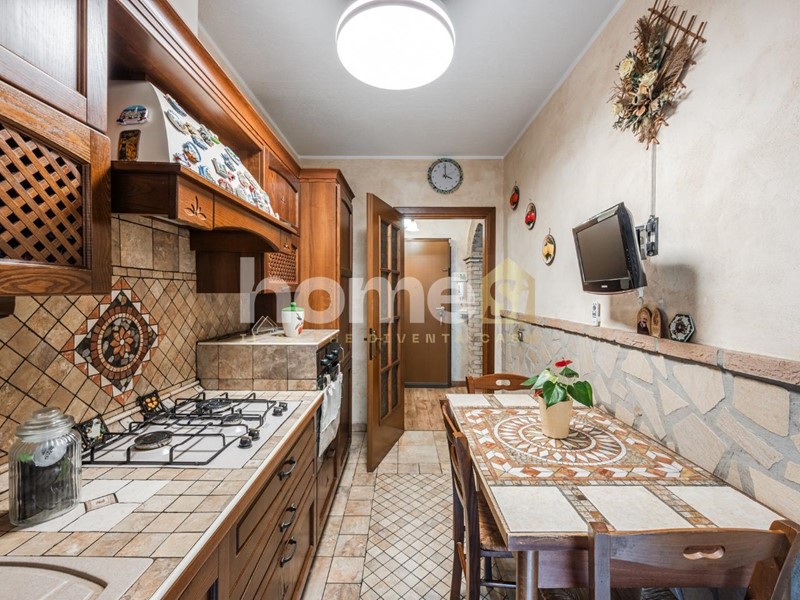 La cucina, separata e abitabile, offre tutto lo spazio necessario per cucinare e si affaccia direttamente sul terrazzo, un vero e proprio valore aggiunto. Il terrazzo, ampio e ben esposto, si estende dalla sala fino alla cucina, offrendo uno spazio esterno ideale per colazioni all’aperto, piante e momenti di relax all’aria aperta.