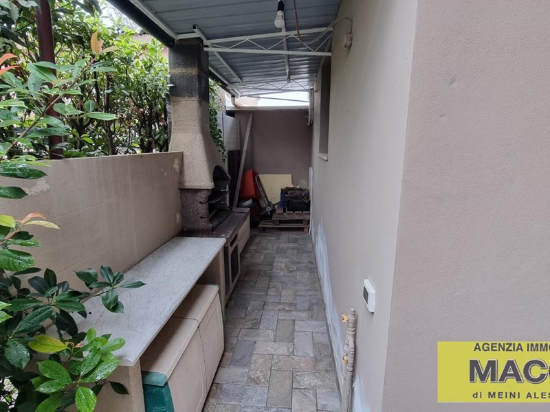 in pertinenza all'abitazione un locale garage/pluriuso di circa mq 30; il tutto accessibile mediante una tettoia coperta di collegamento con l'abitazione; anche la composizione e l'accesso a detto locale è stato pensato sapientemente dagli attuali proprietari, permettendo l'accesso sempre protetti da qualsiasi situazione metereologica e permettendo così di lasciare la casa sempre in ordine; insiste infine sulla proprietà un ulteriore ripostiglio esterno dove sono stati inseriti tutti gli impianti, batterie, ecc..., anch'esso raggiungibile a mezzo di tettoia coperta; molto bello il giardino a pertinenza di circa mq 350 con possibilità di irrigazione a mezzo del pozzo;