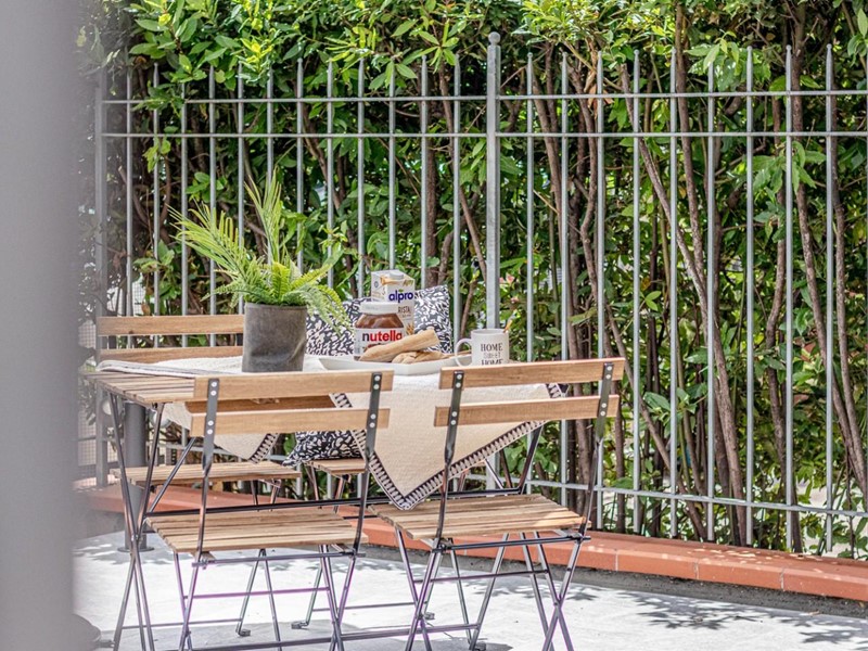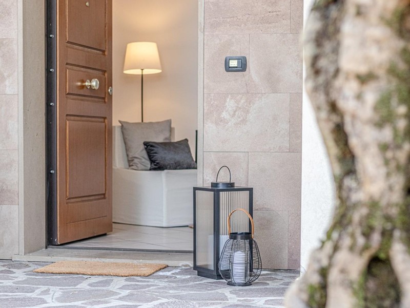 ESTERNO: Giardino d'ingresso ad ovest, mentre sul retro un posto auto ed un ampio resede per pranzi e cene all'aperto.