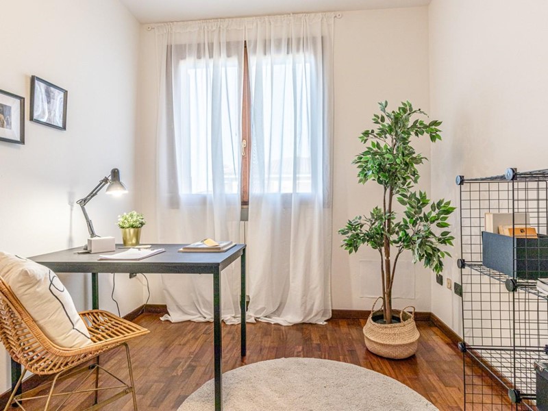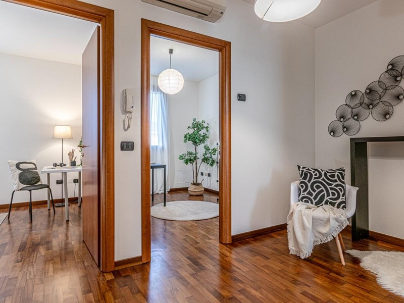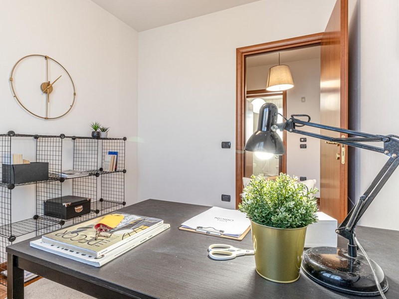 PIANO PRIMO: Grande disimpegno nel quale è possibile ricavare un angolo studio o un grande armadio a muro, due camere (matrimoniale e doppia), studio e bagno.