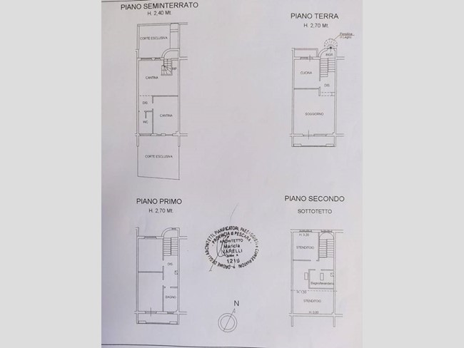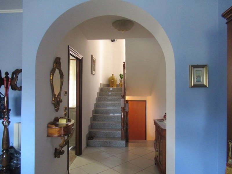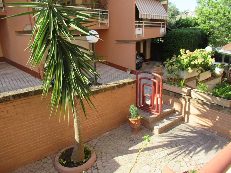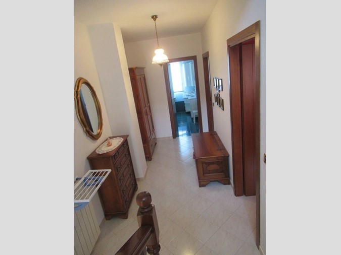 Spoltore ingresso paese Via De Cesaris villetta a schiera centrale costruzione anni 90 su 4 livelli. L'immobile si presenta in ottime condizioni, con doppia corte esclusiva e piccolo appezzamento di terreno di mq.130 c.a. antistante l'immobile collegato con scale in muratura. Al piano seminterrato doppi locali cantine con bagno, caminetto e cucina in muratura, zona giorno con cucina abitabile arredata completa, salone e doppi balconi, piano primo due ampie camere, bagno e balcone,piano secondo sottotetto con due locali stenditoi e bagno. Piccole spese condominiali per le parti comuni, superficie totale mq.170 c.a. Finiture della costruzione ma tutto in ottimo stato abitativo.