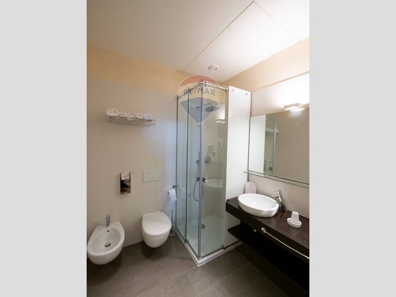 Servizi comuni: la portineria che si trova al piano terra, lavanderia/stireria, un'ampia zona living comune e una zona bar/sala da pranzo trasformabile in cucina abitabile con minimi interventi. Il piano sotterraneo ospita una zona spa completa di area trattamenti, zona relax, grotta salina, sauna, docce emozionali e piscina.
