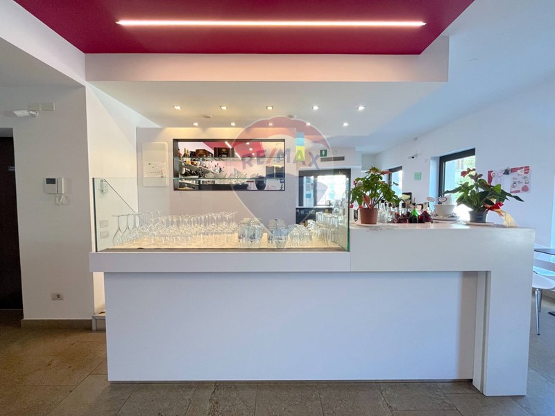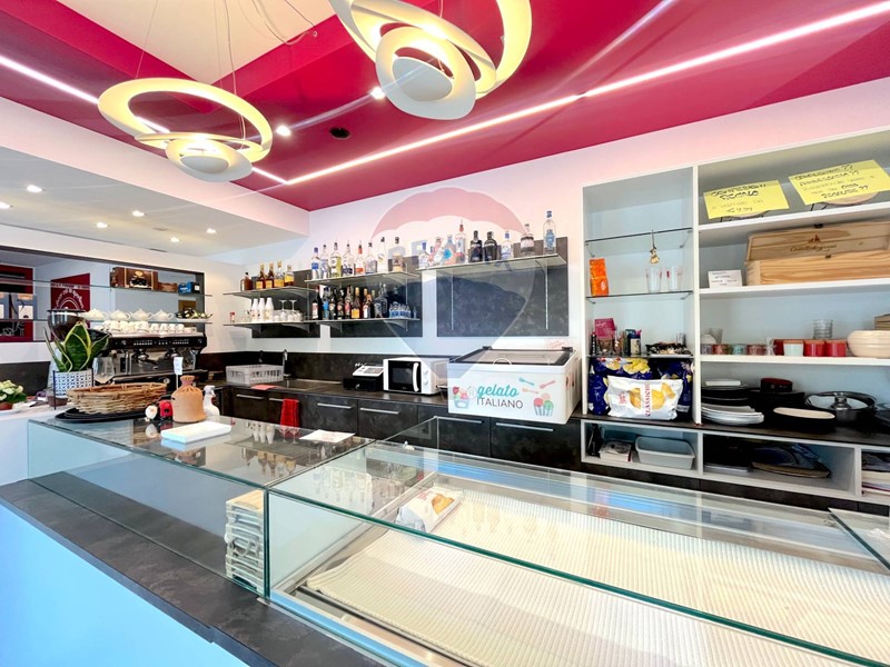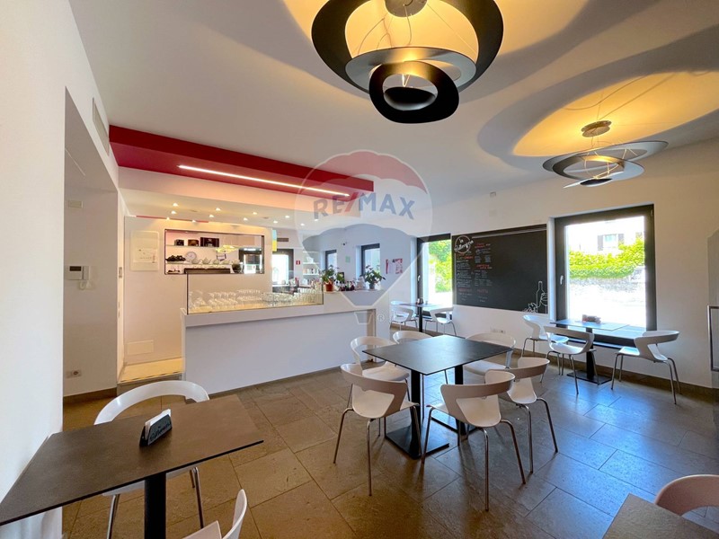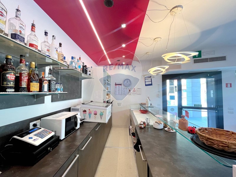 Allinterno, il bar si presenta accogliente e vivace, con una spaziosa zona bancone, dotato di ampia vetrina frigo, numerosi tavoli per il consumo sul posto e una cucina completamente attrezzata e funzionale, ideale per pranzi veloci, aperitivi, colazioni e la gestione della rivendita alimentare.
