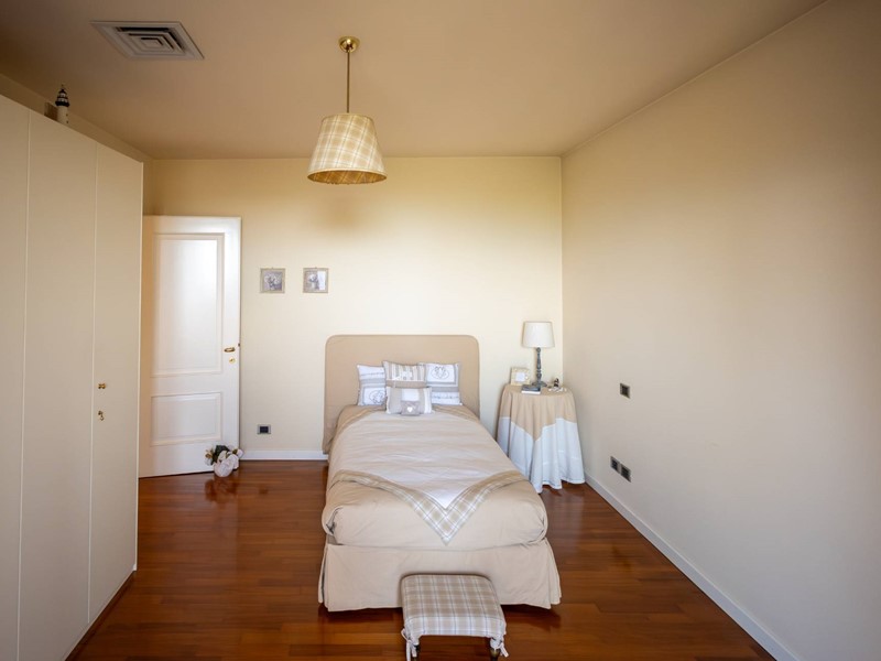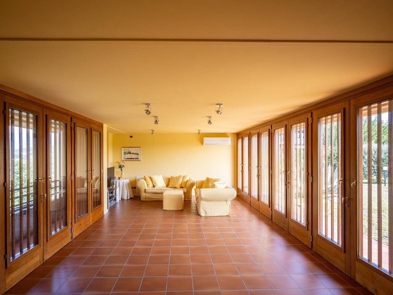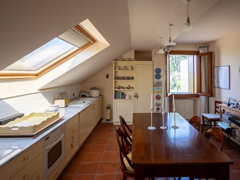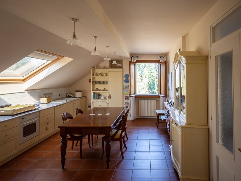 La villa è circondata da un bel giardino privato e da terreni in parte boschivi per complessivi 6.500 mq. anche essi compresi nella vendita.