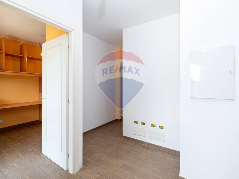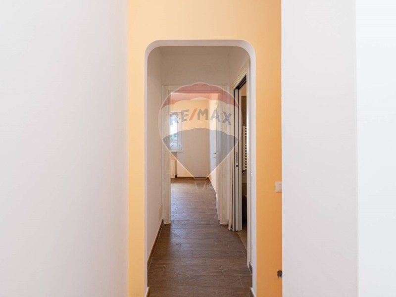 Lingresso avviene attraverso un terrazzo privato che introduce a un comodo disimpegno centrale. Da qui si accede alla camera matrimoniale, spaziosa e luminosa, alla cameretta (ideale anche come studio) e a un bagno completo con finestra.