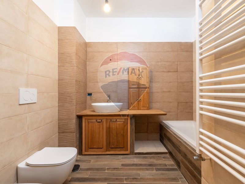 Oltre al patio, questo splendido duplex dispone di un giardino rialzato di circa 100 mq, ben curato e riservato, con un secondo accesso indipendente direttamente su strada e posto auto esterno.