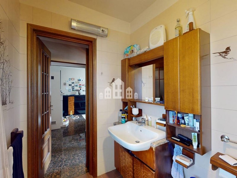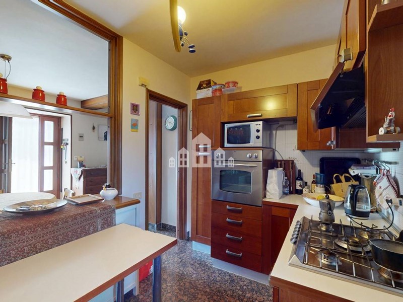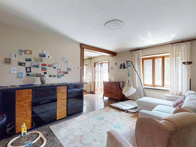 Salendo al primo piano si accede alla zona abitativa, luminosa grazie alla presenza di un balcone che regala aria e luce naturale agli ambienti. Nella zona giorno si trova anche un camino, pratico nella stagione invernale e piacevole alternativa al tradizionale riscaldamento a radiatori, che contribuisce a creare unatmosfera calda e accogliente.